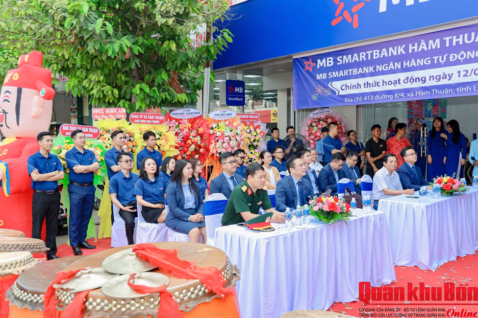 Ngày 8/4/2026, Ngân hàng TMCP Quân Đội (MB) – Chi nhánh Bình Thuận chính thức đưa vào hoạt động điểm giao dịch ngân hàng số tự phục vụ SmartBank (SMB) Hàm Thuận tại xã Hàm Thuận. Sự kiện diễn ra trong khuôn khổ các hoạt động chào mừng ngày giải phóng địa phương, với sự tham dự của đại diện lãnh đạo chính quyền, các cơ quan, đối tác và đông đảo khách hàng trên địa bàn.