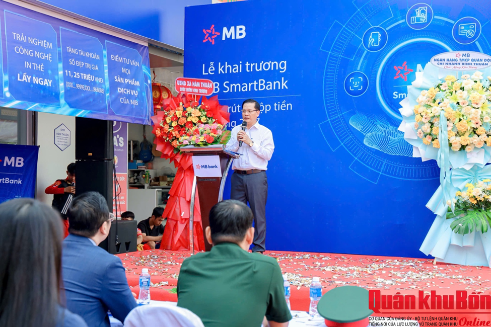 Phát biểu tại buổi lễ, ông Phan Đông Triều – Giám đốc MB Bình Thuận cho biết, khu vực Hàm Thuận là địa bàn giàu tiềm năng phát triển, với nhu cầu ngày càng gia tăng đối với các dịch vụ tài chính – ngân hàng hiện đại. Việc đưa SmartBank vào vận hành thể hiện cam kết đồng hành lâu dài của MB trong việc hỗ trợ người dân và doanh nghiệp tiếp cận các giải pháp tài chính số, góp phần tối ưu dòng tiền, nâng cao hiệu quả sản xuất – kinh doanh và thúc đẩy phát triển kinh tế địa phương.