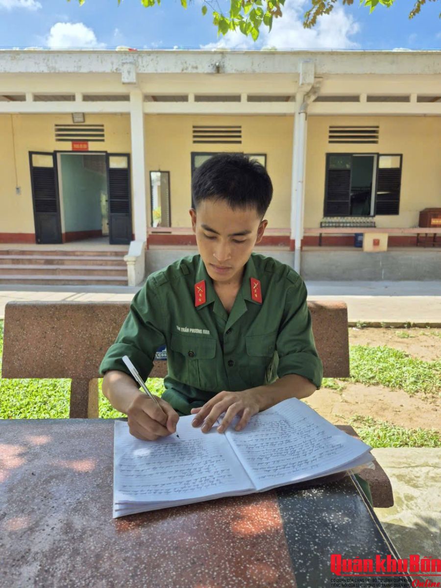 Hôm nay, con lại ngồi trong góc giường quen thuộc của phòng ở Đại đội 7, Tiểu đoàn 8, Trung đoàn 3, Sư đoàn 324; ngoài kia gió thổi qua hàng cây rì rào như tiếng quê nhà Đức Quang (Hà Tĩnh). Con mở cuốn sổ nhỏ, cuốn sổ đã theo con suốt những ngày quân ngũ để viết vài dòng, gửi đến bố mẹ ở nơi xa, gửi đến bà nội ở nhà một mình, và cũng là gửi cho chính lòng mình.