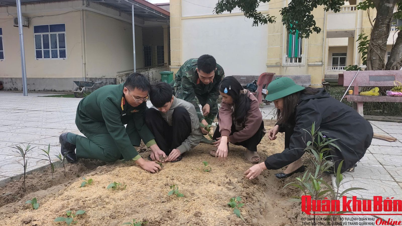 Thực hiện nội dung ký kết chương trình phối hợp triển khai mô hình “Cán bộ, chiến sĩ Sư đoàn 968 đồng hành, chia sẻ yêu thương với trẻ em khuyết tật”, ngày 21/11/2025, Sư đoàn 968 (Quân khu 4) điều động 30 cán bộ, chiến sĩ phối hợp với cán bộ, giáo viên Trường Trẻ em khuyết tật tỉnh Quảng Trị tổ chức trồng hoa, chăm sóc cây xanh và gieo trồng rau màu trong khuôn viên nhà trường.