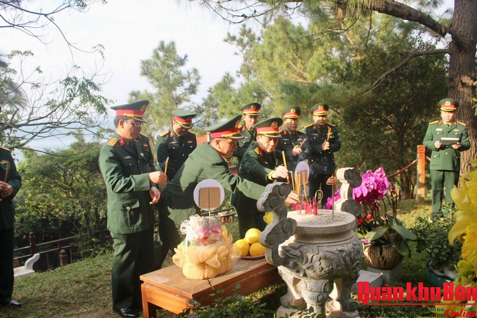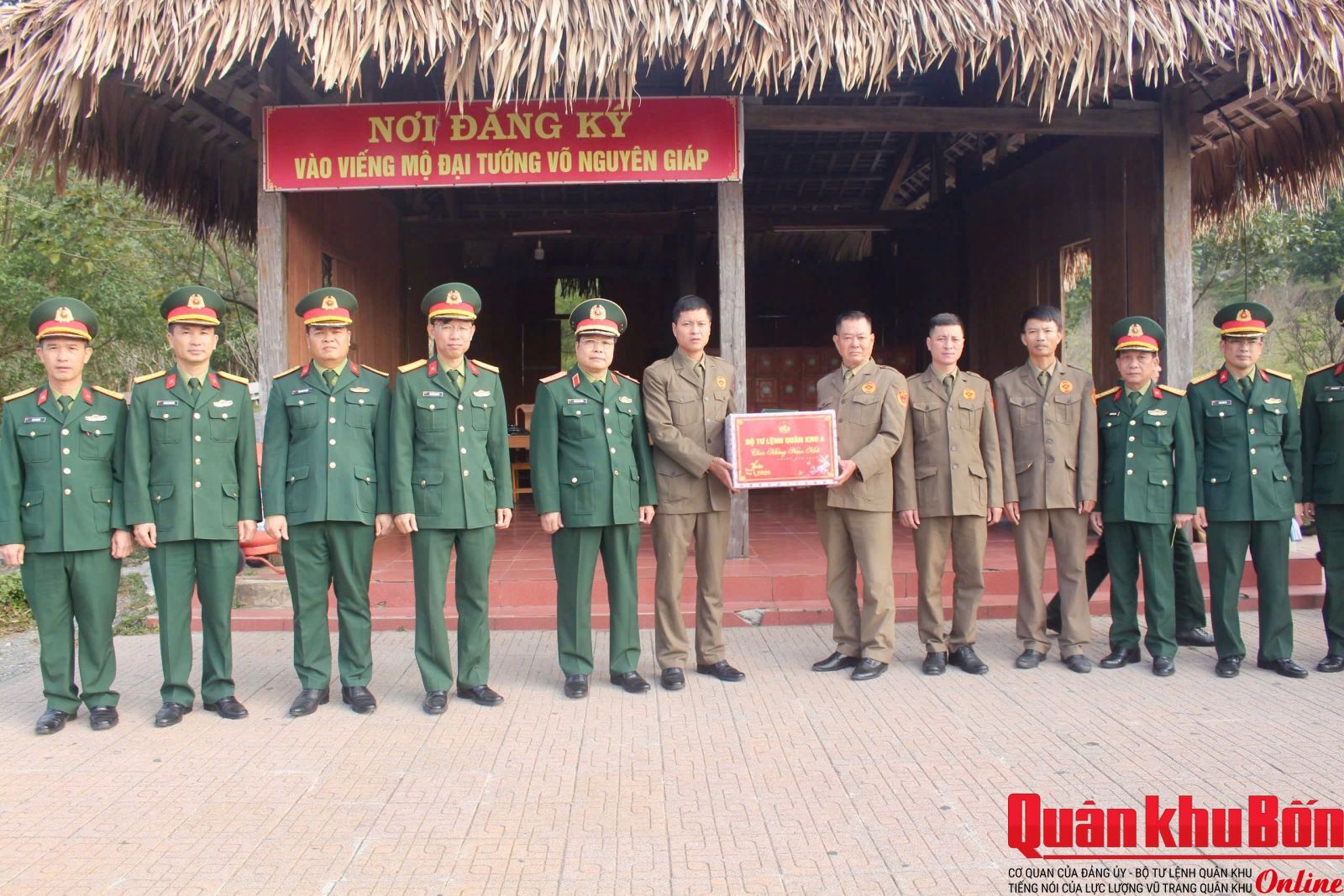 Theo chương trình, đoàn công tác đã đến khu mộ Đại tướng Võ Nguyên Giáp tại Vũng Chùa – Đảo Yến. Trong không khí trang nghiêm, thành kính, Thiếu tướng Ngô Nam Cường, Phó Tư lệnh Quân khu 4 cùng các thành viên trong đoàn đã kính cẩn dâng hoa, dâng hương, bày tỏ lòng biết ơn sâu sắc đối với Đại tướng Võ Nguyên Giáp, vị Tổng Tư lệnh đầu tiên của Quân đội Nhân dân Việt Nam, người Anh Cả của lực lượng vũ trang Nhân dân, đã có những cống hiến to lớn, trọn đời vì sự nghiệp cách mạng của Đảng, của dân tộc và Quân đội.