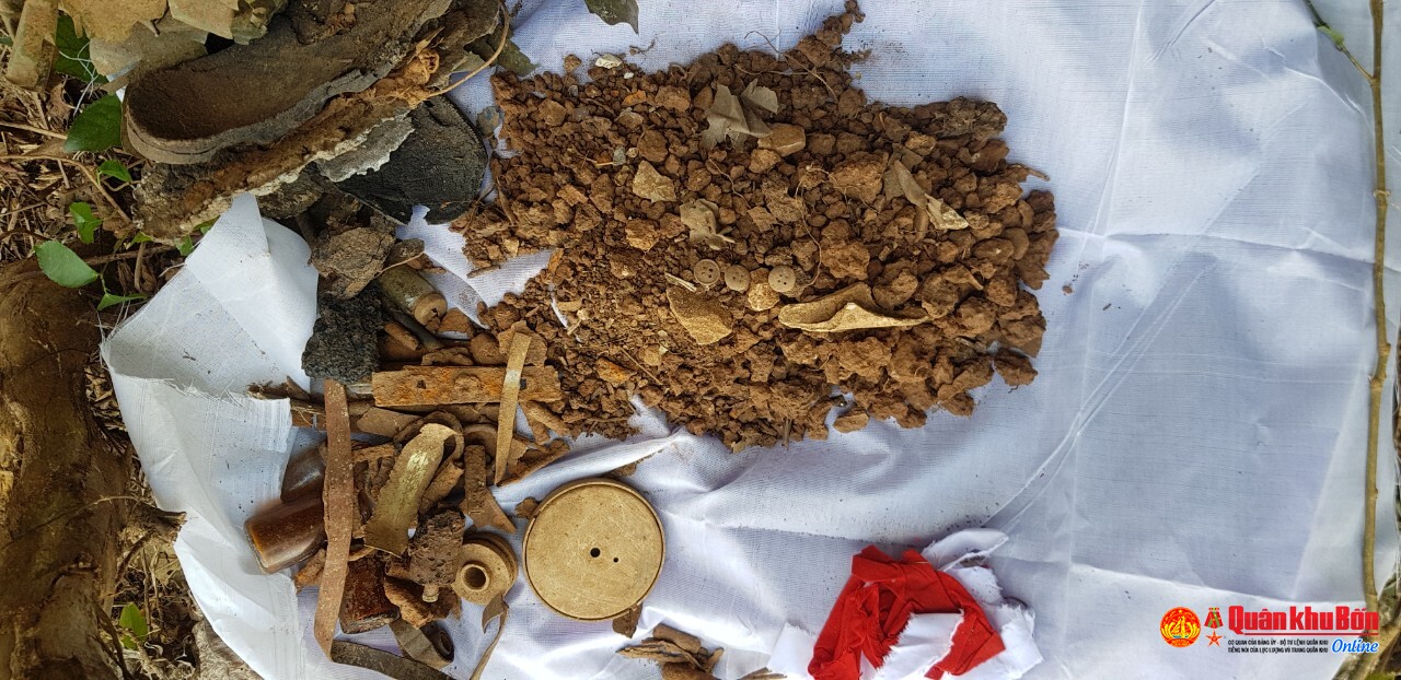 Hài cốt Liệt sĩ nằm xen kẽ giữa các hòn đá tảng, ở độ sâu khoảng 0,3m dưới các gốc cây rừng. Di vật của Liệt sĩ có: 1 mảnh xương đùi vỡ, 01 đế dép, 02 đế giày cao su, 03 cúc áo, mảnh tăng, dù rách, 01 khuy súng, 03 viên đạn AK, 01 viên đạn 12,7, 01 hộp nhôm tròn; 01 mảnh nhôm dài; miếng nhựa và một số di vật khác. Sau khi phát hiện Đội Quy tập tiếp tục mở rộng phạm vi tìm kiếm khu vực xung quanh nơi phát hiện hài cốt Liệt sĩ.