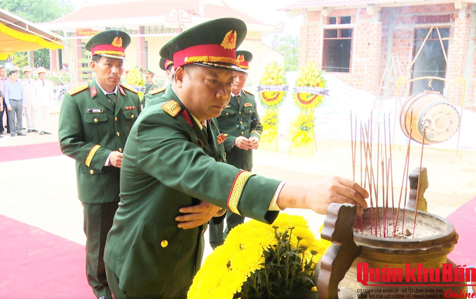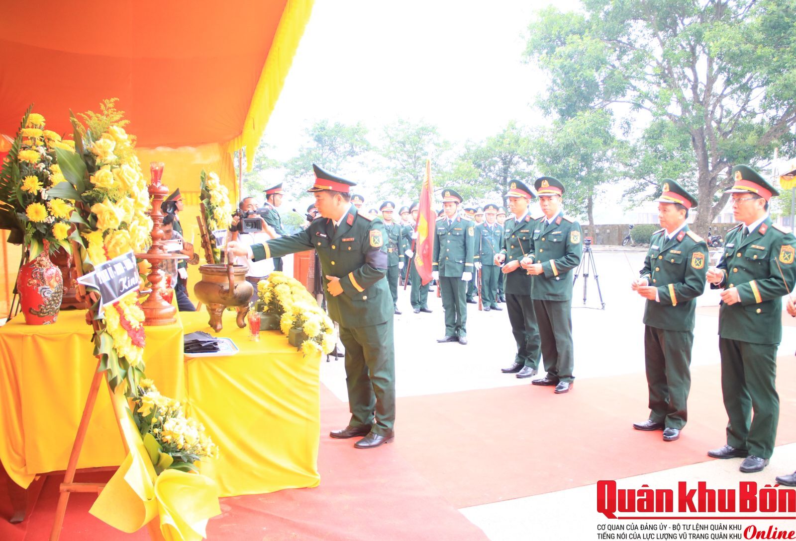 Đại tá Nguyễn Đức Thạo, Chính uỷ Đoàn KT-QP 337 dự và chủ Lễ an táng. Cùng dự có lãnh đạo chỉ huy các cơ quan, đơn vị và cán bộ, nhân viên, trí thức trẻ tình nguyện trong toàn Đoàn.