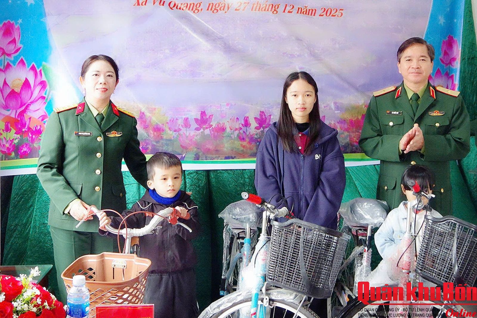 Tại buổi lễ, Thiếu tướng, Tiến sĩ Lê Khắc Huy đã trao quyết định tặng nhà tình nghĩa cho đại diện gia đình. Nhân dịp này, gia đình Thiếu tướng Lê Khắc Huy trao tặng 3 chiếc xe đạp cho 3 học sinh có hoàn cảnh khó khăn; 10 suất quà cho các gia đình người có công, gia đình chính sách. Ban Chỉ huy Phòng thủ khu vực 2 - Vũ Quang trao quà tặng gia đình bà Linh; Đồn Biên phòng Cửa khẩu quốc tế Cầu Treo trao 5 suất quà cho các hộ gia đình gặp khó khăn trên địa bàn.