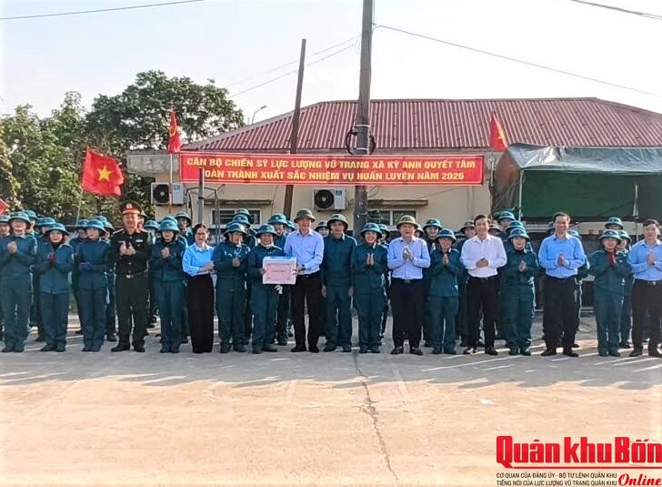 Nhằm tiếp thêm động lực cho các chiến sĩ dân quân năm thứ nhất đang tham gia huấn luyện năm 2026, Đảng ủy, Hội đồng Nhân dân, Ủy ban Nhân dân, Ủy ban Mặt trận (HĐND - UBND – UBMT) Tổ quốc xã Kỳ Anh, tỉnh Hà Tĩnh vừa tổ chức đoàn công tác đến thăm, tặng quà, động viên chiến sĩ.