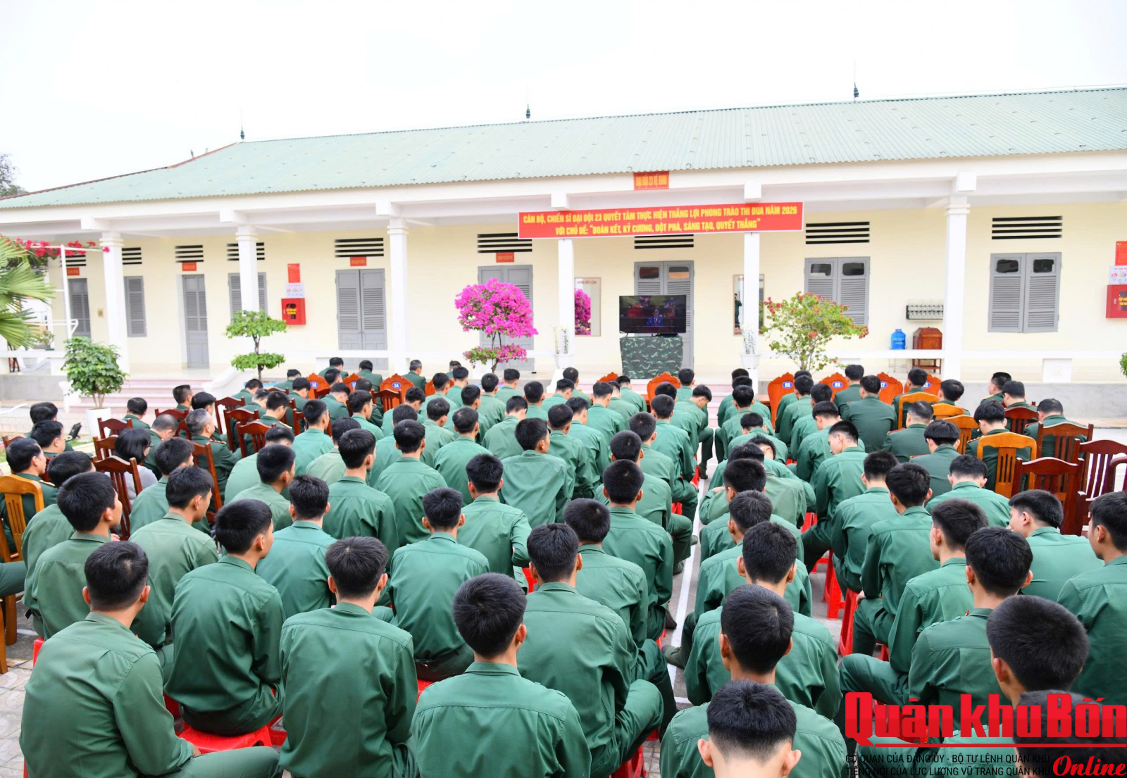 Cán bộ chiến sĩ Đại đội 5, Tiểu đoàn 2, Lữ đoàn Pháo binh16 xem khai mạc Đại hội.
