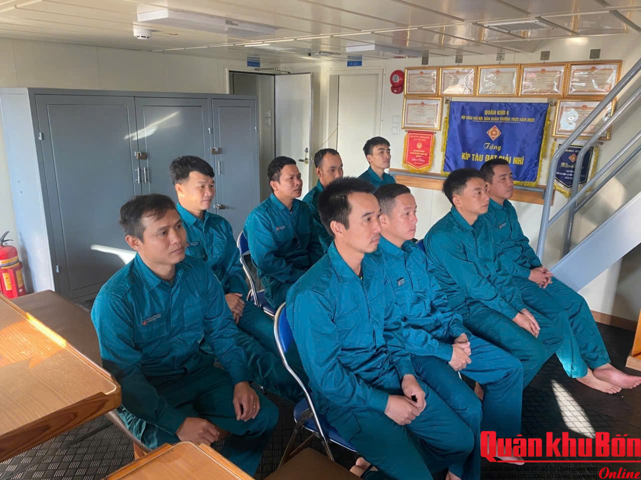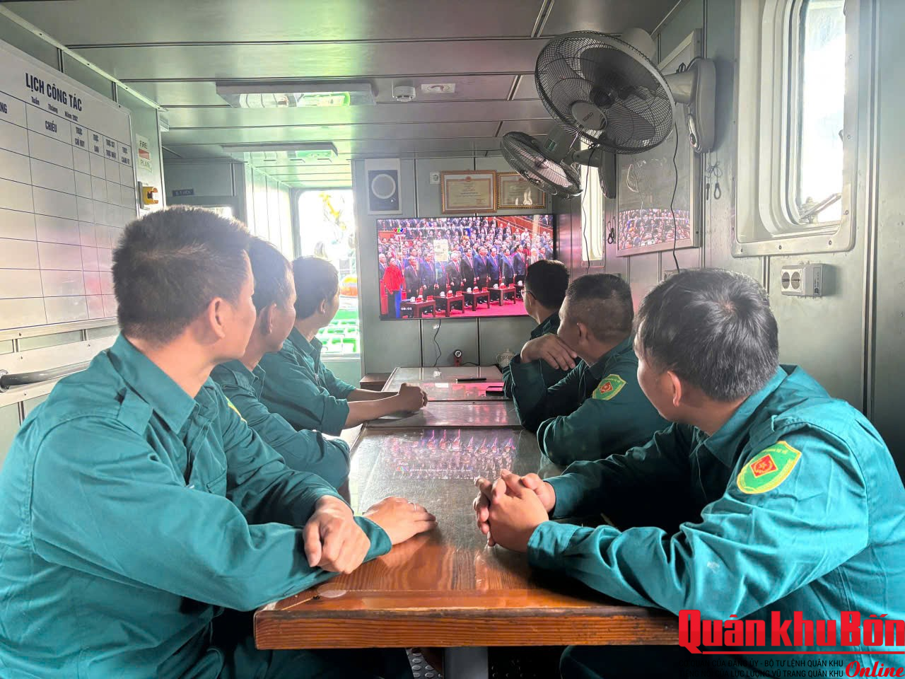 Cán bộ chiến sĩ Đảo Mê (Khu vực phòng thủ 5 - Tĩnh Gia, Bộ Chỉ huy Quân sự tỉnh Thanh Hóa) xem trực tiếp khai mạc Đại hội.