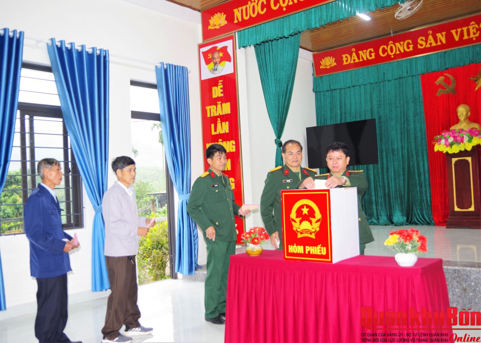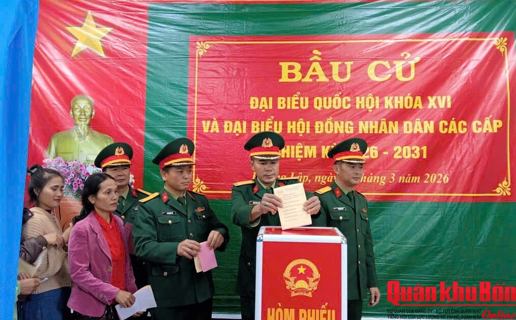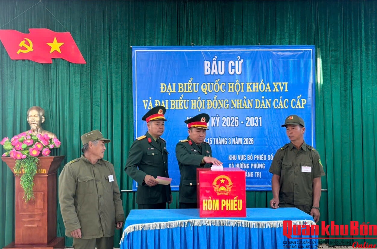 Trong niềm vui hân hoan và khí thế phấn khởi của ngày hội toàn dân đi bầu cử, sáng ngày 15/03/2026, tất cả cử tri là cán bộ, chiến sĩ, trí thức trẻ tình nguyện của các cơ quan, đơn vị trực thuộc Đoàn KT-QP 337, Quân khu 4, đã có mặt tại 11 điểm bầu cử trên địa bàn 3 xã gồm: xã Hướng Phùng, xã Hướng Lập và xã Cam Lộ, tỉnh Quảng Trị để lựa chọn những người tiêu biểu đủ đức, đủ tài và đại diện cho ý chí, nguyện và và quyền làm chủ của Nhân dân để vào Quốc hội khoá XVI và Hội đồng Nhân dân tỉnh Quảng Trị nhiệm kỳ 2026 - 2031.