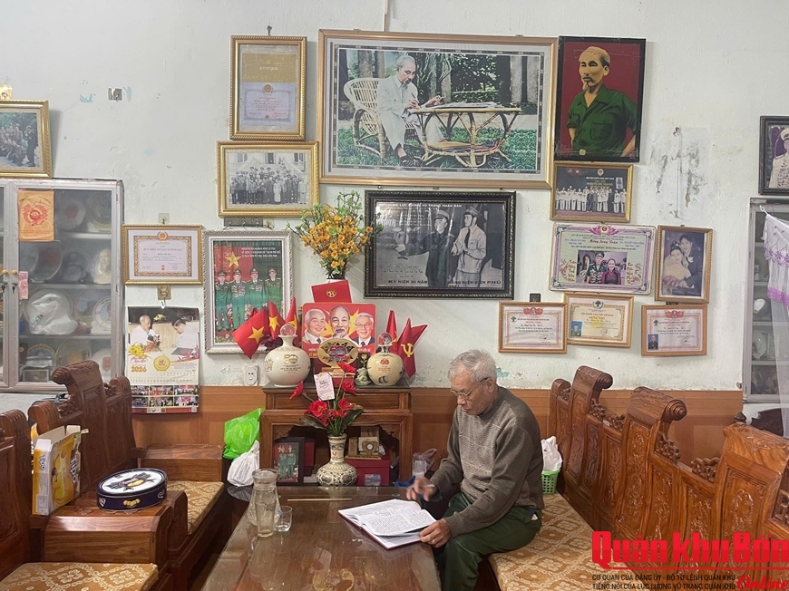 Ngày đầu năm, trong ngôi nhà nhỏ của Anh hùng LLVT Nhân dân Phạm Văn Thọ ấm áp lạ thường. Trong căn nhà cấp 4 ở Tổ dân phố Hồng Quang, phường Hải Lĩnh, tỉnh Thanh Hóa, đơn sơ nhưng gọn gàng và ngăn nắp, ông còn có hẳn một “phòng truyền thống” lưu giữ các loại huân chương, huy chương, bằng khen, giấy khen và rất nhiều những tấm ảnh kỷ niệm. Mỗi bức ảnh là một câu chuyện về thành tích giết giặc, lập công của ông trong thời chiến tranh, trận mạc...