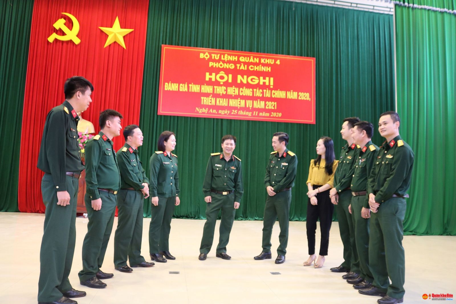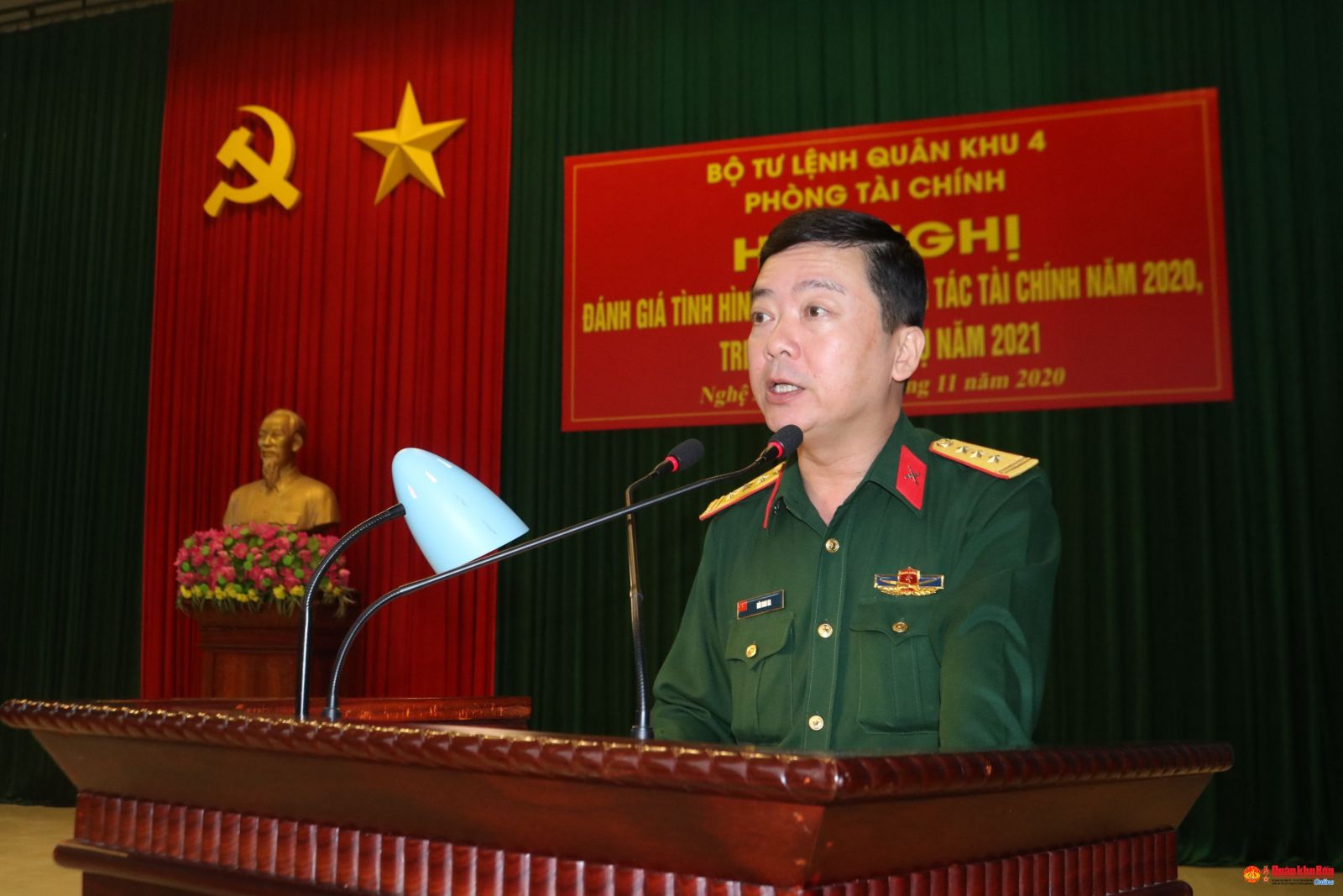 Ngày 25/11/2020, Ngành Tài chính Quân khu 4 tổ chức Hội nghị đánh giá tình hình thực hiện công tác Tài chính năm 2020; Triển khai phương hướng, nhiệm vụ năm 2021. Dự hội nghị có 115 cán bộ, nhân viên Tài chính các cơ quan, đơn vị trong toàn Quân khu.