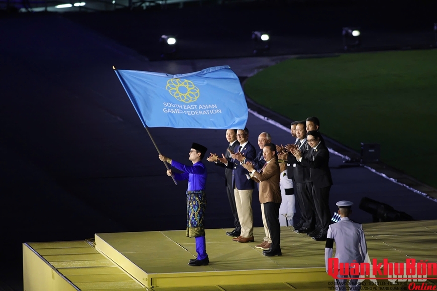 Sau khi các tiết mục nghệ thuật khép lại, Ban tổ chức tiến hành phần nghi lễ quan trọng nhất của lễ bế mạc. Nghi thức tắt đuốc SEA Games 33, hạ cờ được cử hành trang trọng, chính thức khép lại Đại hội. Đồng thời, nước chủ nhà Thái Lan cũng trao lại cờ đăng cai cho Malaysia - quốc gia sẽ tổ chức SEA Games 34 vào năm 2027.