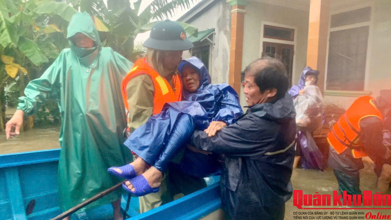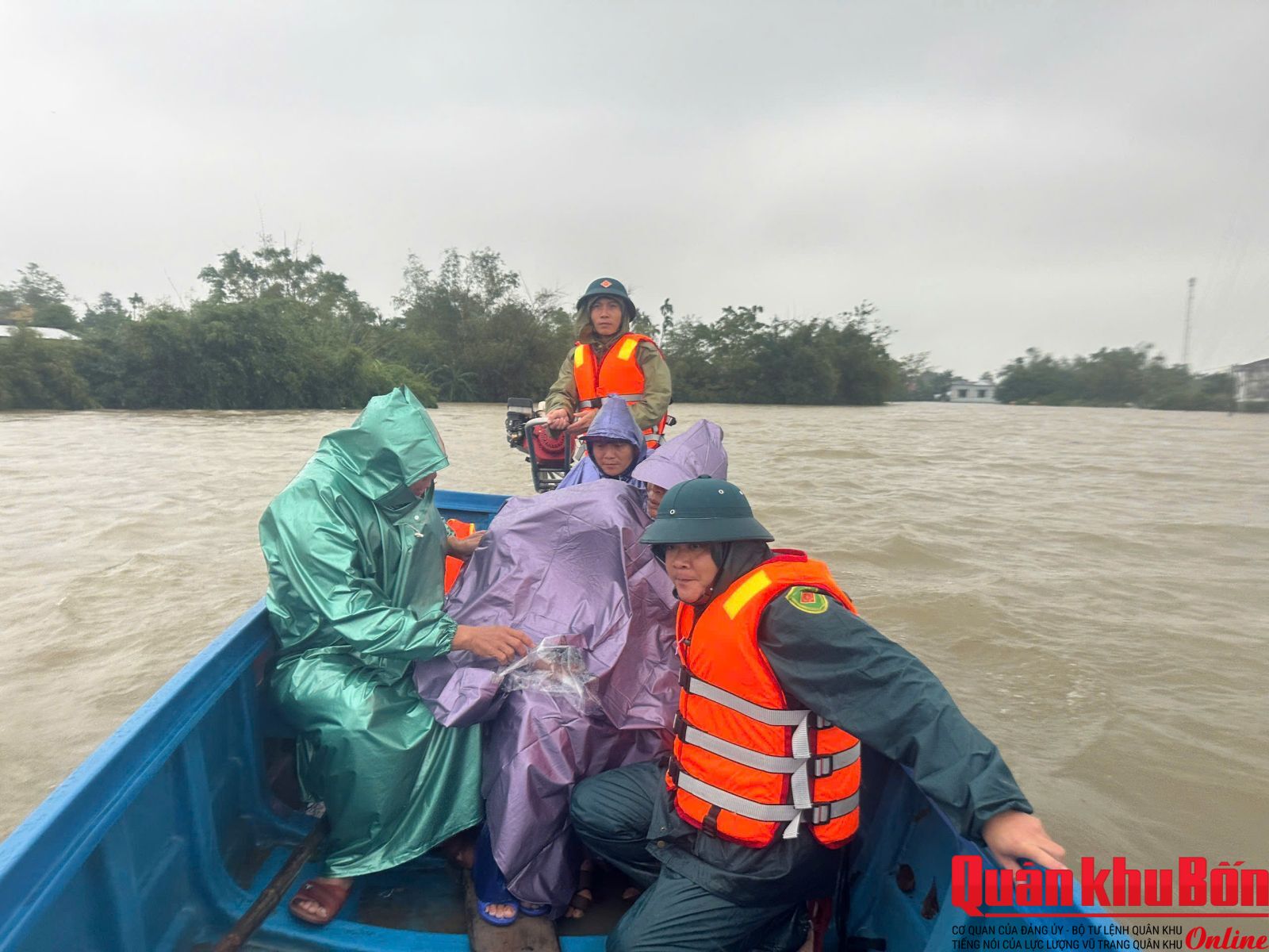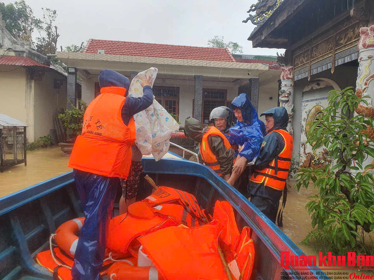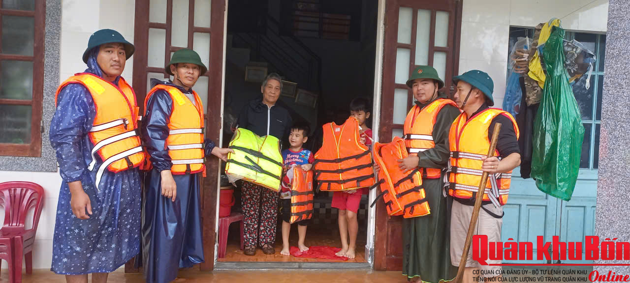 Theo đó, Ban Chỉ huy phòng thủ Khu vực 1 - Hương Trà phối hợp với các lực lượng trên địa bàn 20 xã, phường di dời người dân đến nơi an toàn; kê kích tài sản, tặng áo phao, lương thực, thực phẩm cho người dân.