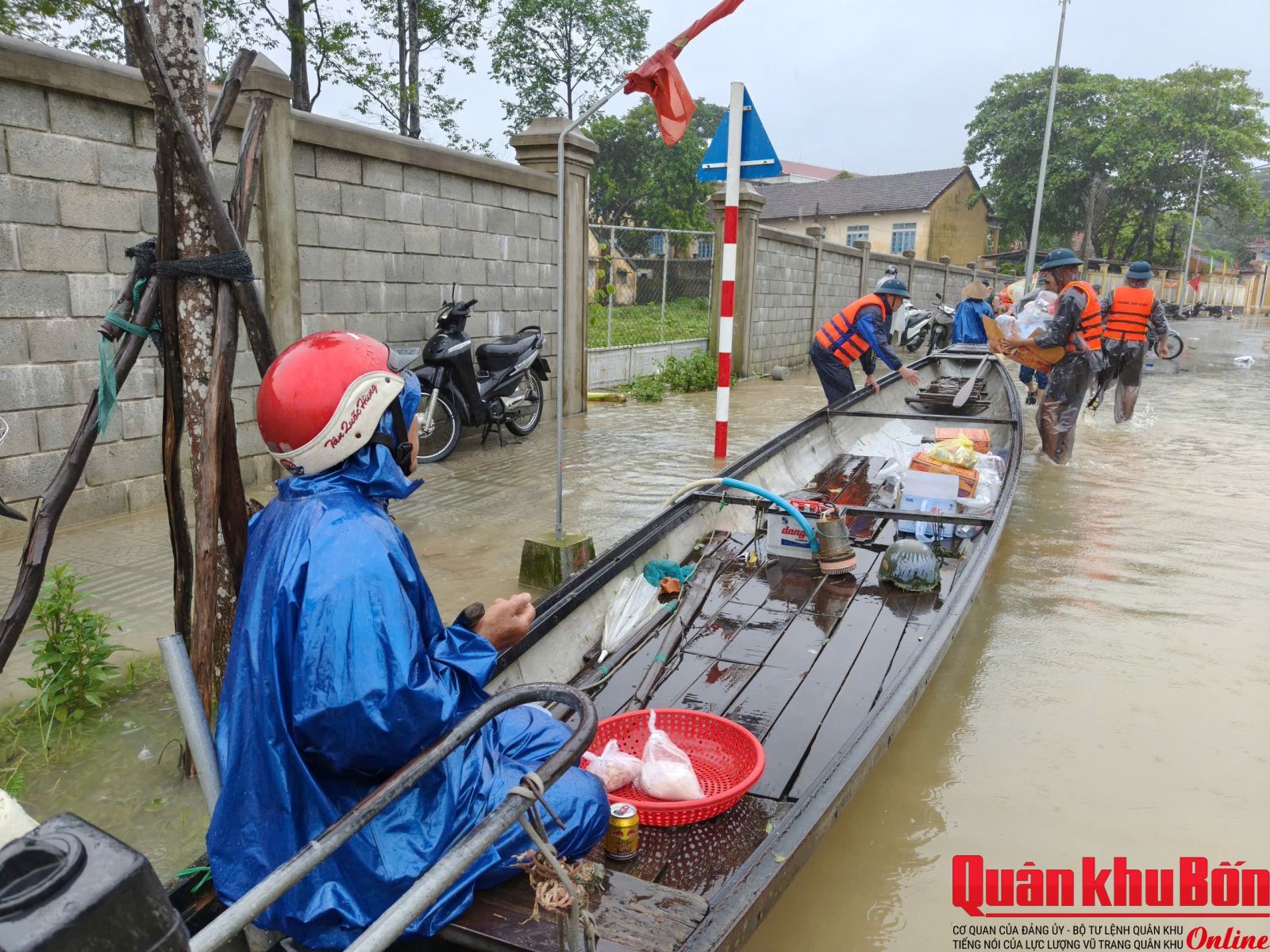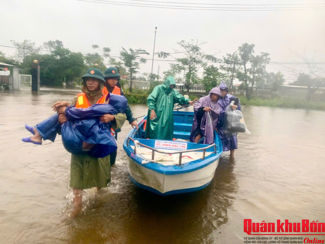 Trước tình hình mưa to, nước lũ lên cao, Ban Chỉ huy Khu vực 1 - Hương Trà, Bộ Chỉ huy Quân sự thành phố Huế huy động lực lượng phối hợp với các lực lượng di chuyển người và vật chất đến nơi an toàn.