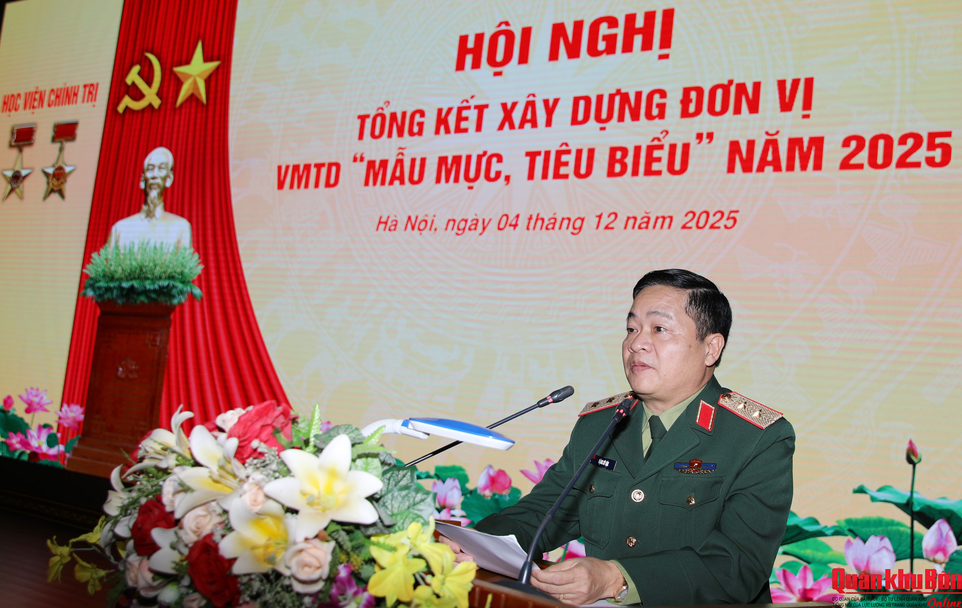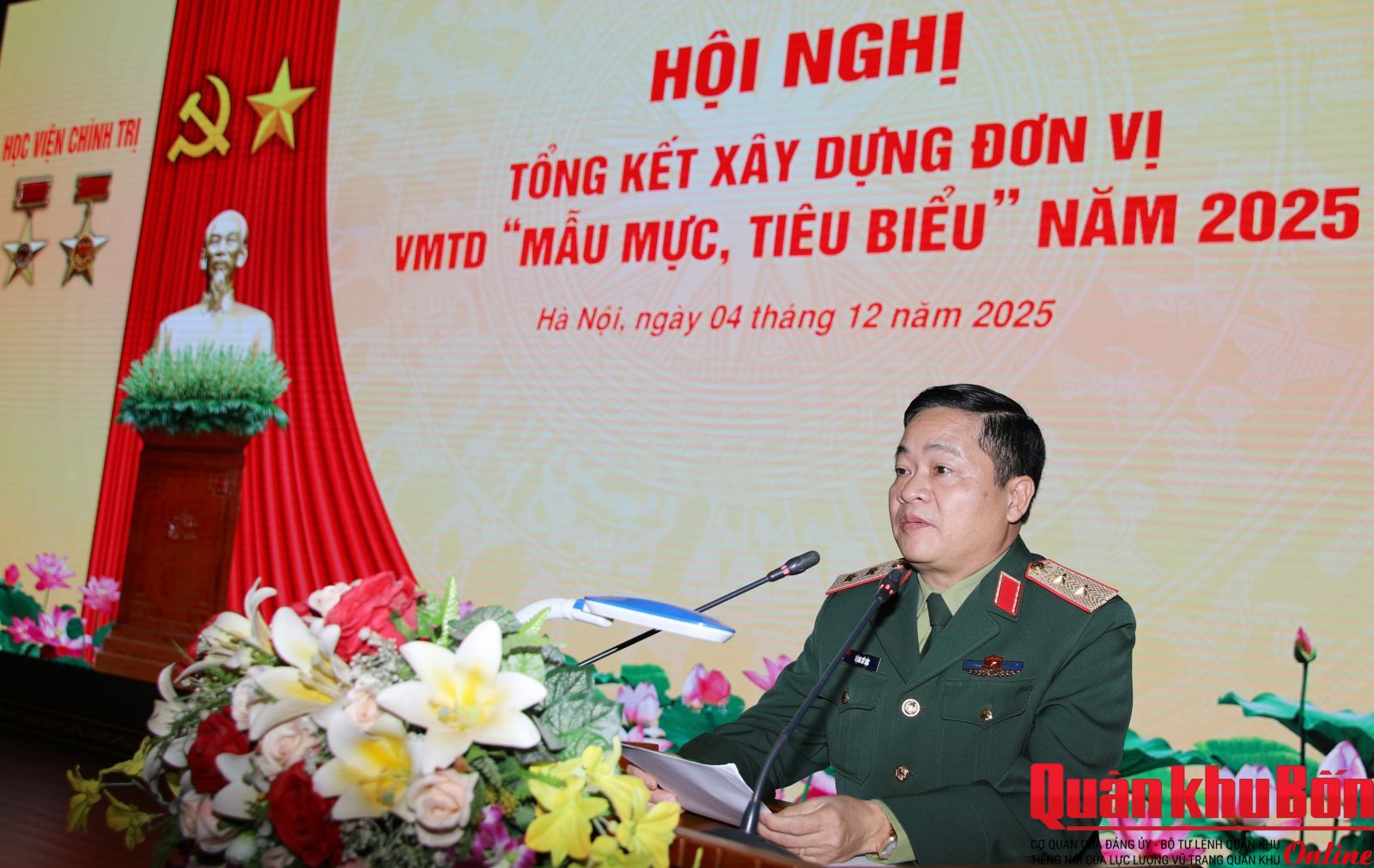 Ngày 4/12/2025, Học viện Chính trị đã tổ chức Hội nghị tổng kết xây dựng đơn vị vững mạnh toàn diện “Mẫu mực, tiêu biểu” năm 2025. Trung tướng Đặng Sỹ Lộc, Giám đốc Học viện chủ trì Hội nghị.