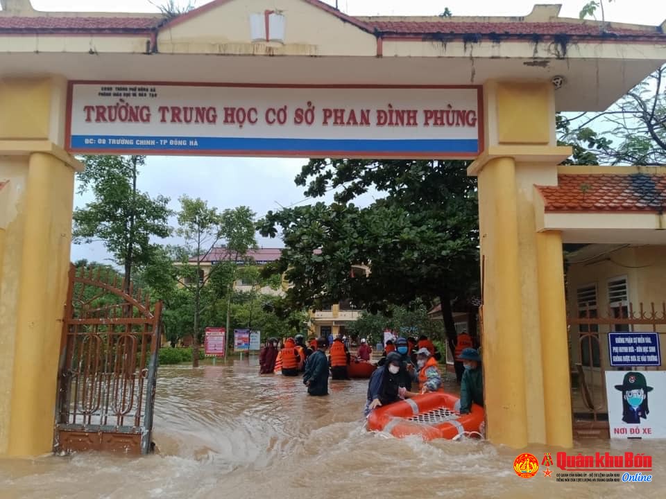 Nhận được tin báo, Ban CHQS thành phố Đông Hà đã huy động 25 cán bộ và dân quân giúp 37 hộ dân kê kích tài sản lên cao, di chuyển người và nhiều vật dụng quan trọng đến vị trí an toàn. Ngoài ra, lực lực dân quân còn sử dụng 4 phao cứu sinh và 2 xuồng cao su đưa hơn 100 em học sinh mắc kẹt tại Trường THCS Phan Đình Phùng do nước lũ dâng cao đến nơi an toàn.