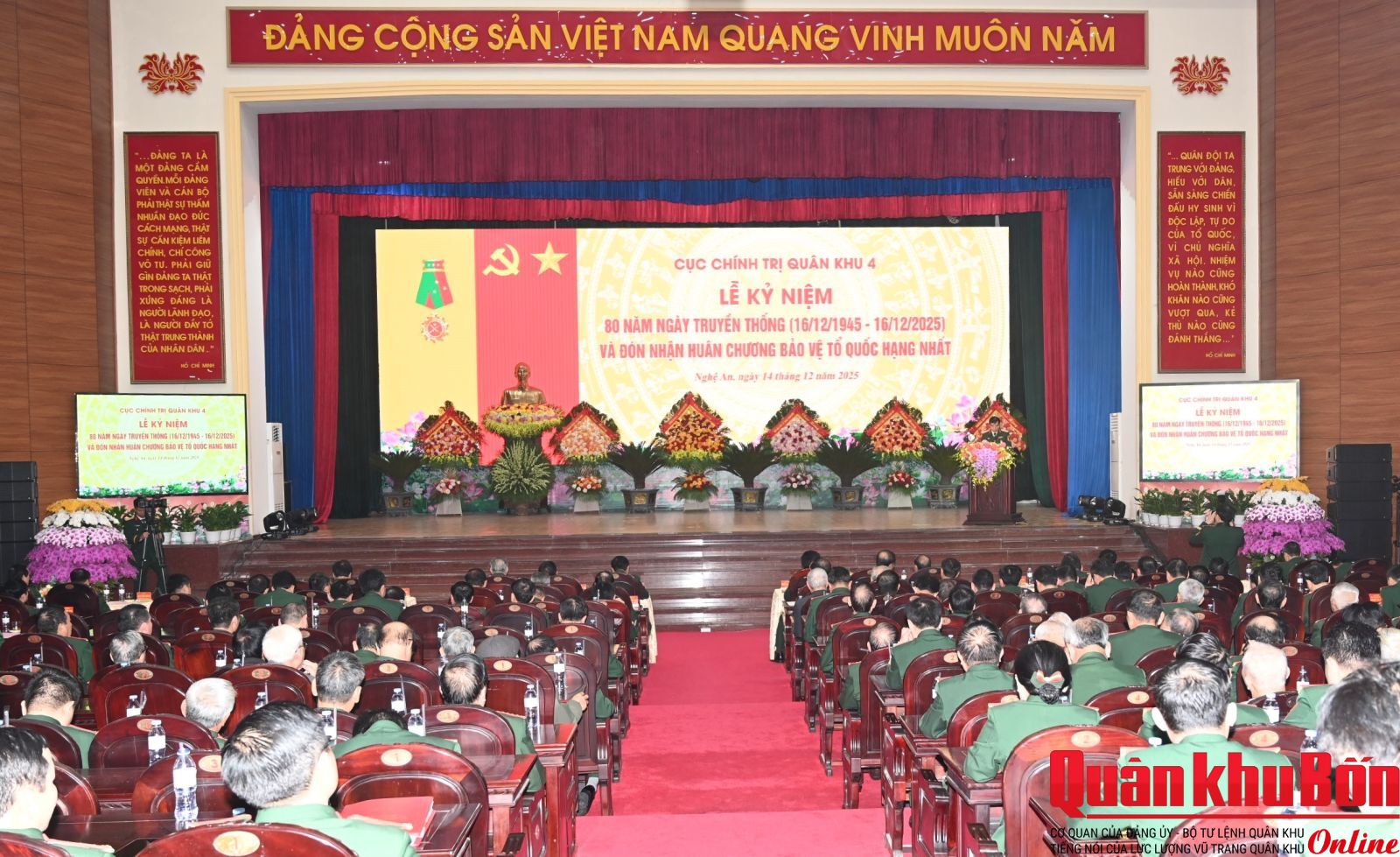 Tại Lễ kỷ niệm 80 năm Ngày truyền thống Cục Chính trị Quân khu 4 (16/12/1945 – 16/12/2025) và đón nhận Huân chương Bảo vệ Tổ quốc hạng Nhất, Thiếu tướng Phạm Văn Đông, Ủy viên Ban Thường vụ Đảng ủy, Chủ nhiệm Chính trị Quân khu đã trình bày diễn văn ôn lại chặng đường xây dựng, chiến đấu và trưởng thành đầy tự hào của cơ quan chính trị Quân khu; đồng thời khẳng định vai trò đặc biệt quan trọng của công tác đảng, công tác chính trị trong xây dựng Lực lượng vũ trang vững mạnh về chính trị, tư tưởng và tổ chức, đáp ứng yêu cầu nhiệm vụ trong tình hình mới. Báo Quân khu 4 trân trọng giới thiệu toàn văn Diễn văn tại Lễ kỷ niệm.