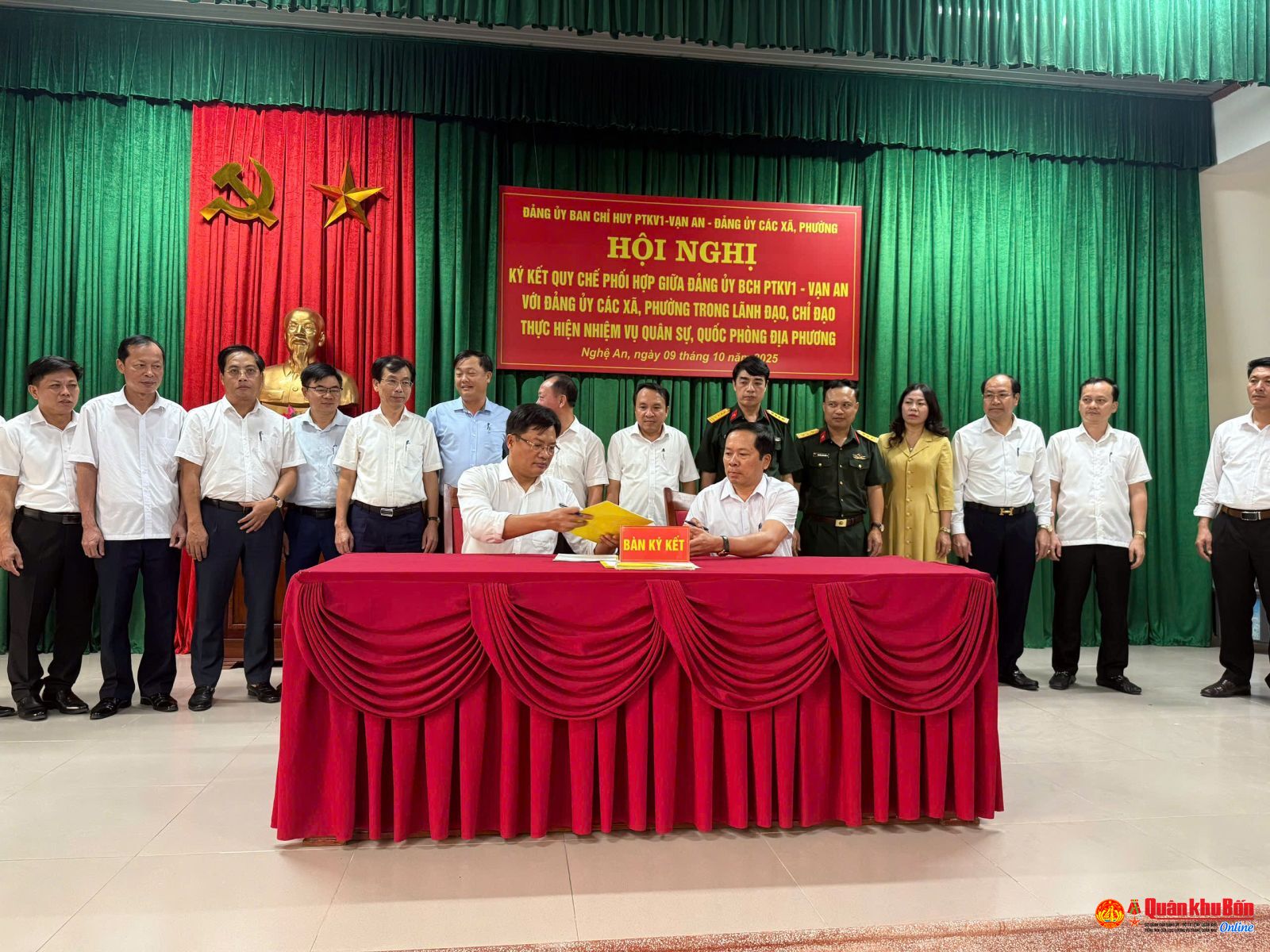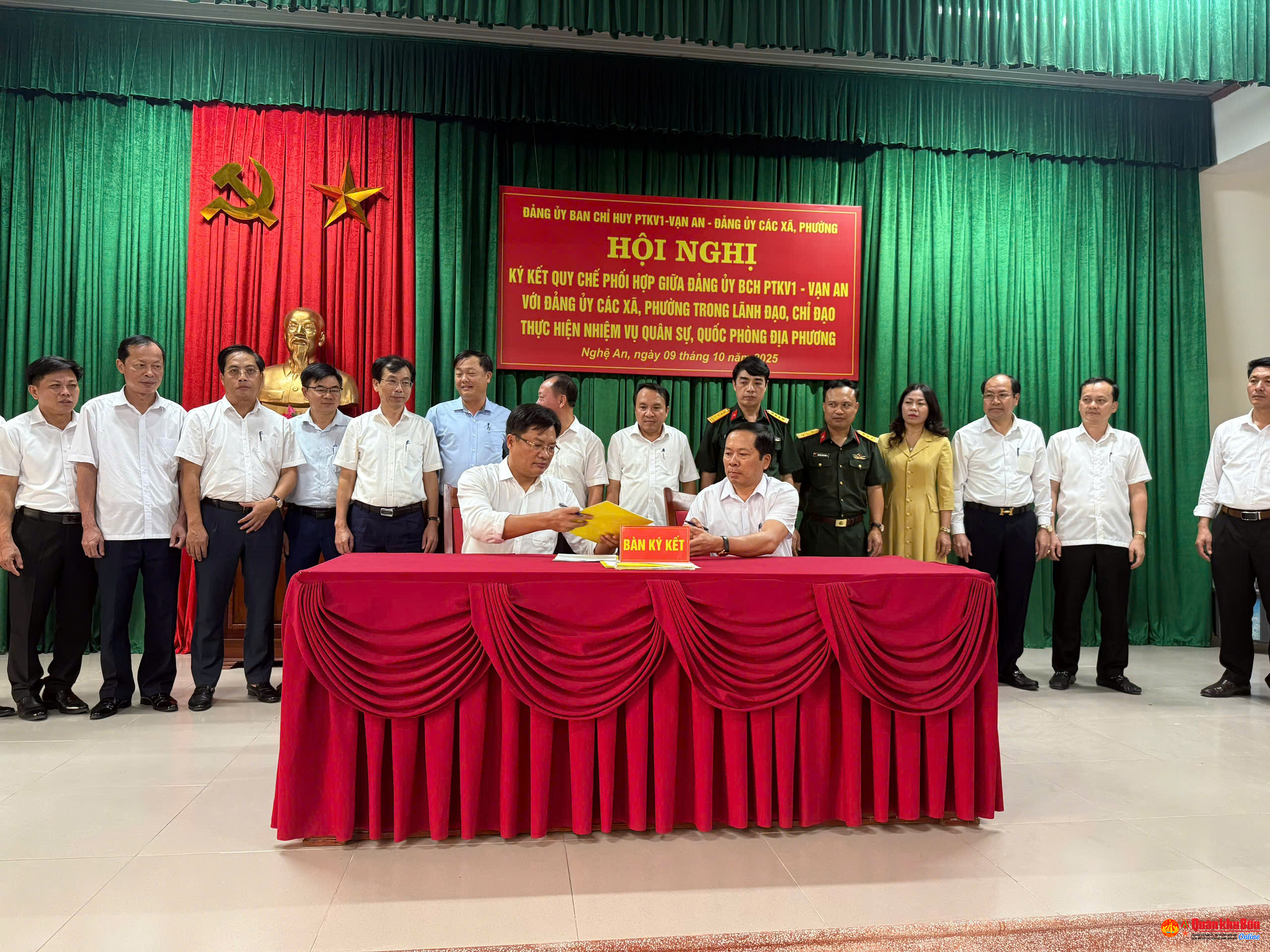 Ngày 09 tháng 10 năm 2025, tại Ban Chỉ huy Phòng thủ khu vực 1 (CHPTKV1) - Vạn An, Đảng ủy Ban CHPTKV1 phối hợp với Đảng ủy 22 xã, phường trên địa bàn tổ chức hội nghị ký kết quy chế phối hợp trong lãnh đạo, chỉ đạo thực hiện nhiệm vụ quân sự, quốc phòng địa phương.