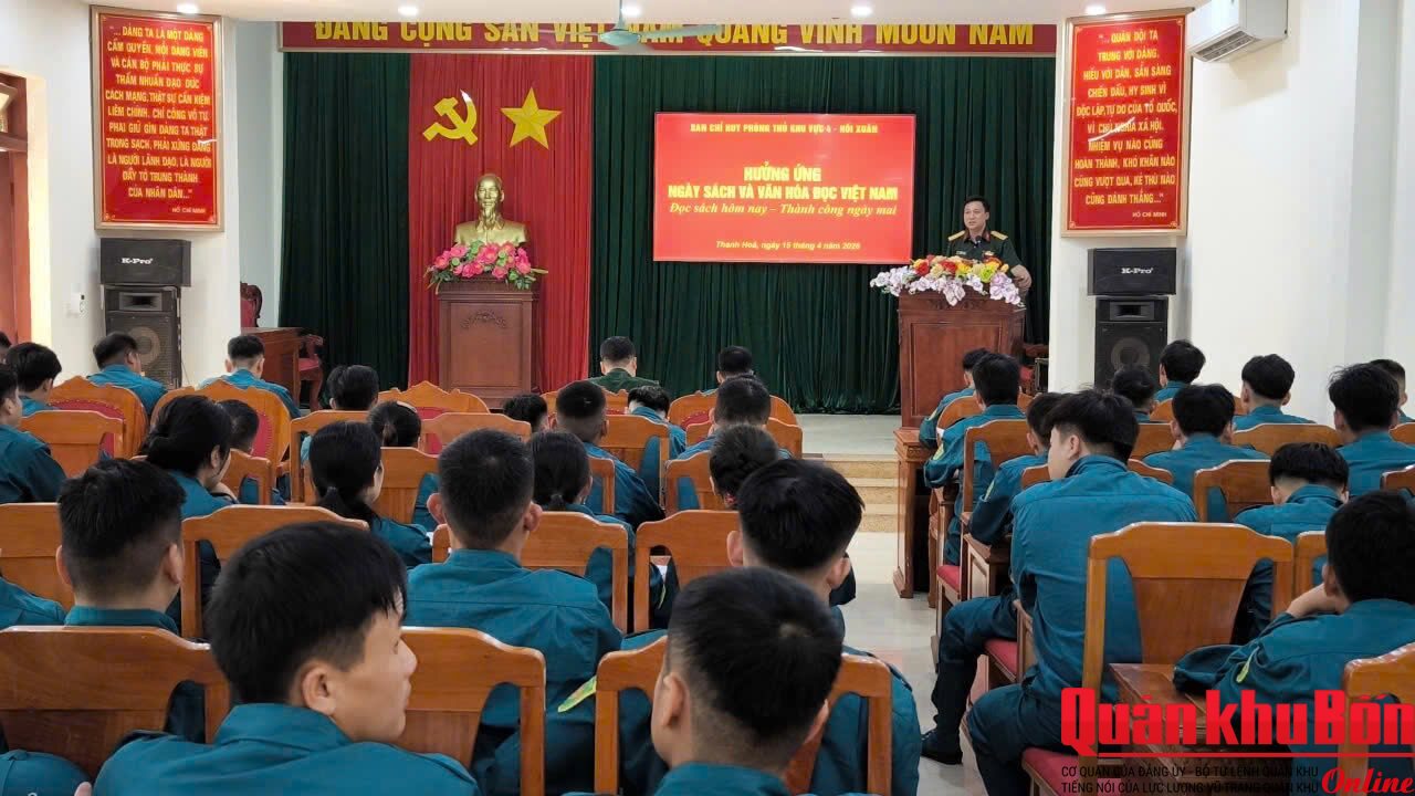 Hưởng ứng Ngày Sách và Văn hóa đọc Việt Nam lần thứ năm (21/4/2026), Ban Chỉ huy Phòng thủ khu vực 4 – Hồi Xuân, Bộ Chỉ huy Quân sự tỉnh Thanh Hóa đã tổ chức nhiều hoạt động thiết thực, ý nghĩa nhằm lan tỏa văn hóa đọc trong cán bộ, chiến sĩ lực lượng vũ trang và Nhân dân trên địa bàn.