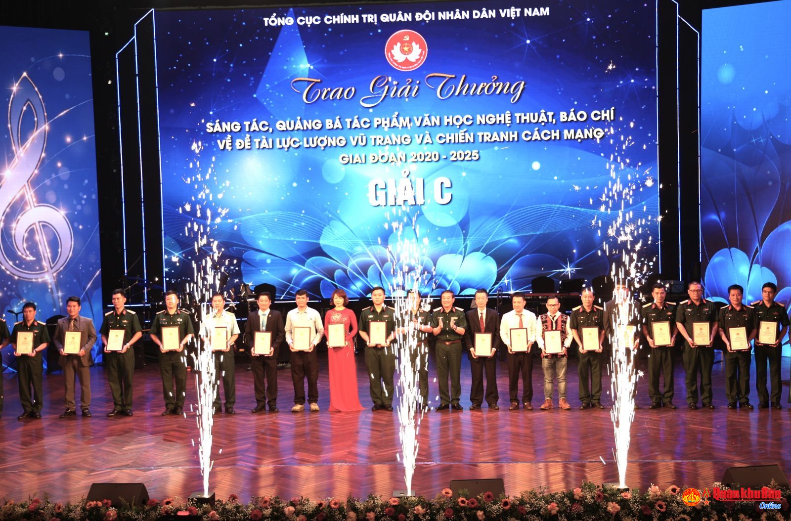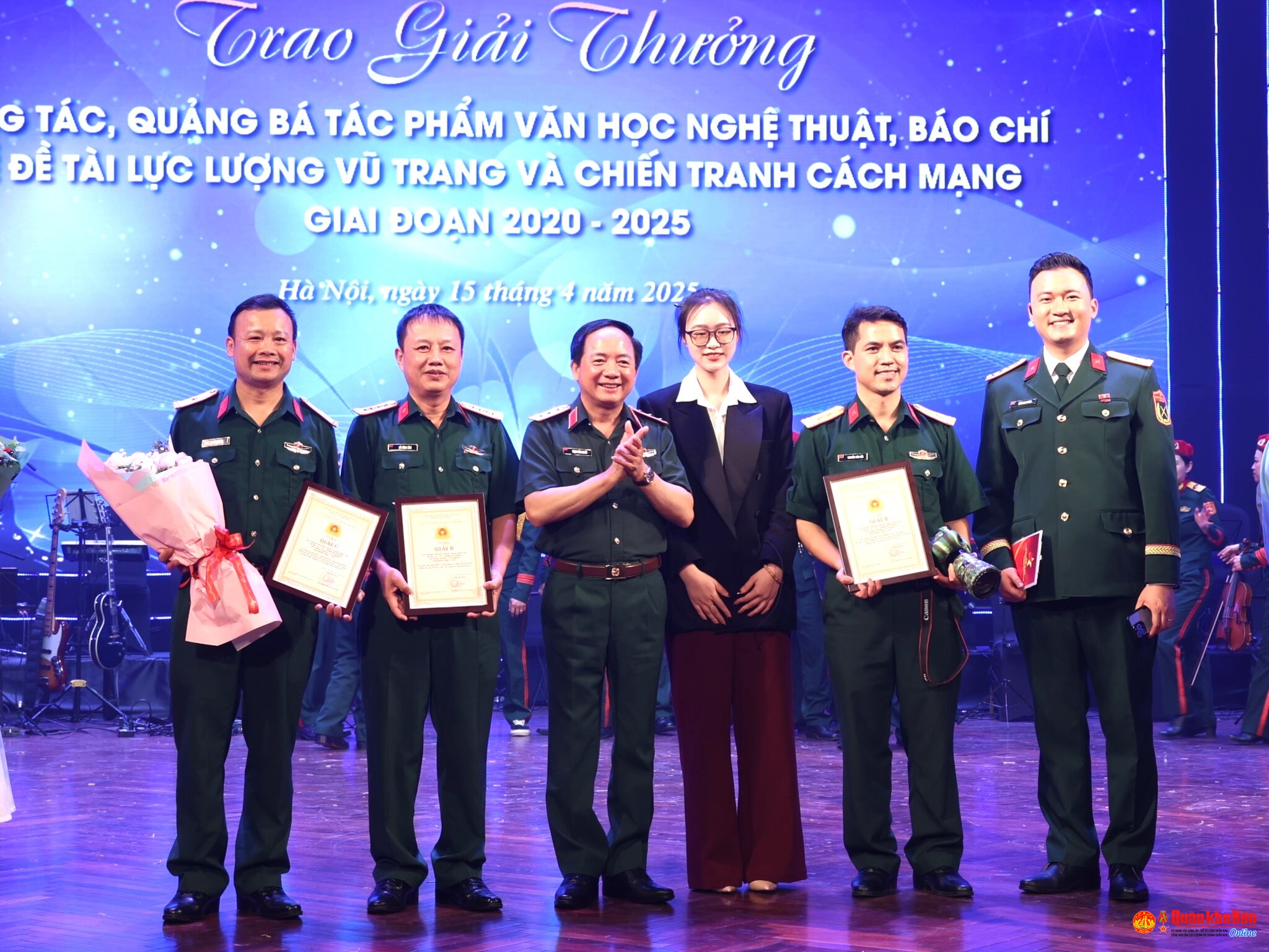 Tổng Cục Chính trị đã trao 208 giải về đề tài lực lượng vũ trang và chiến tranh cách mạng, trong đó có 30 giải A, 43 giải B, 59 giải C cho các tác giả, nhóm tác giả đạt giải. Trong đó, các tác phẩm đạt giải của Báo Quân khu 4 gồm: Tác phẩm ảnh nghệ thuật “Chung chiến hào đánh giặc thời bình” của nhóm tác giả Hồ Công Lĩnh, Hồ Quốc Việt đạt giải B; phóng sự truyền hình “Mãi mãi là sao sáng dẫn đường” của nhóm tác giả Hồ Công Lĩnh, Trần Văn Dũng, Lê Văn Thắng, Hồ Quốc Việt đạt giải C về Tác phẩm văn học nghệ thuật, báo chí về đề tài lực lượng vũ trang và chiến tranh cách mạng giai đoạn 2020 - 2025; tác phẩm ảnh nghệ thuật “Tìm đồng đội trên đất bạn Lào” của nhóm tác giả Hồ Công Lĩnh, Lê Văn Thắng, Hồ Quốc Việt, Trần Văn Dũng, Phùng Ngọc Thăng, Đặng Huy Cường đạt giải Thể hiện xuất sắc chủ đề Học tập và làm theo tư tưởng, đạo đức, phong cách Hồ Chí Minh năm 2024.