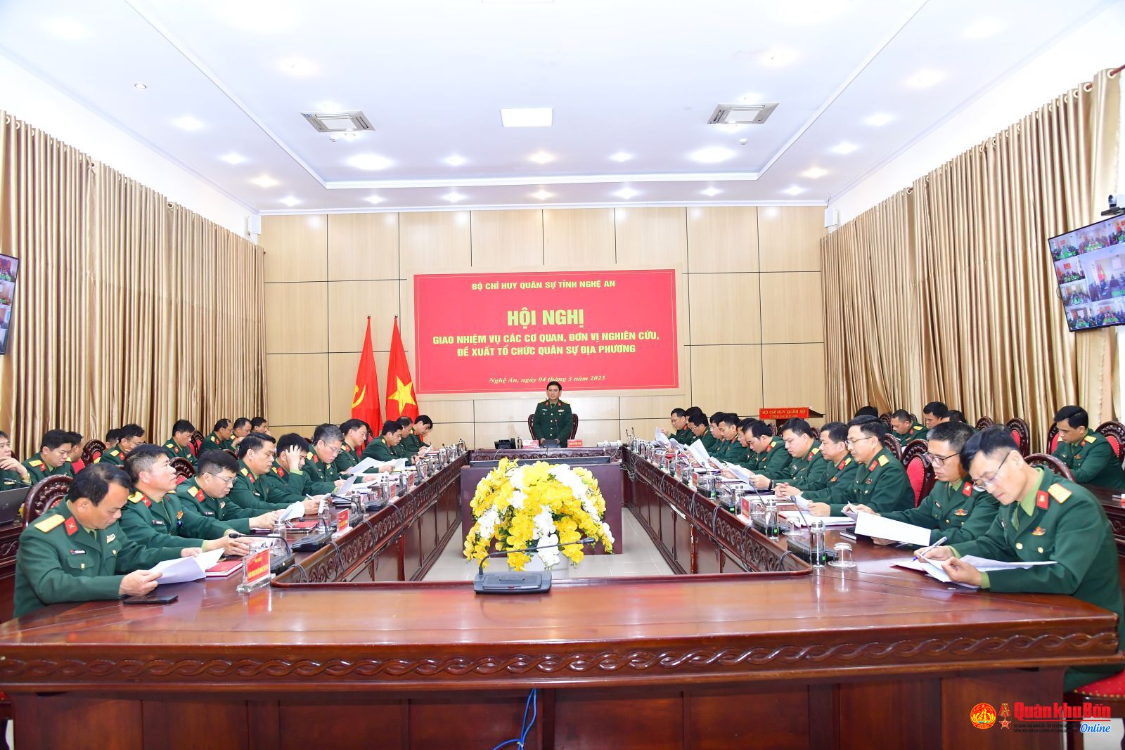 Thực hiện ý kiến chỉ đạo của Bộ tư lệnh Quân khu 4, ngày 4/3/2025, Bộ Chỉ huy Quân sự tỉnh Nghệ An tổ chức Hội nghị giao nhiệm vụ cho các cơ quan, đơn vị nghiên cứu, đề xuất tổ chức quân sự địa phương theo hình thức trực tiếp và trực tuyến.