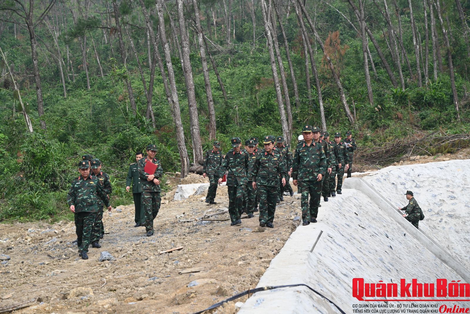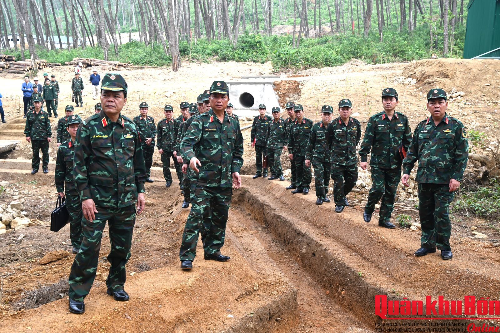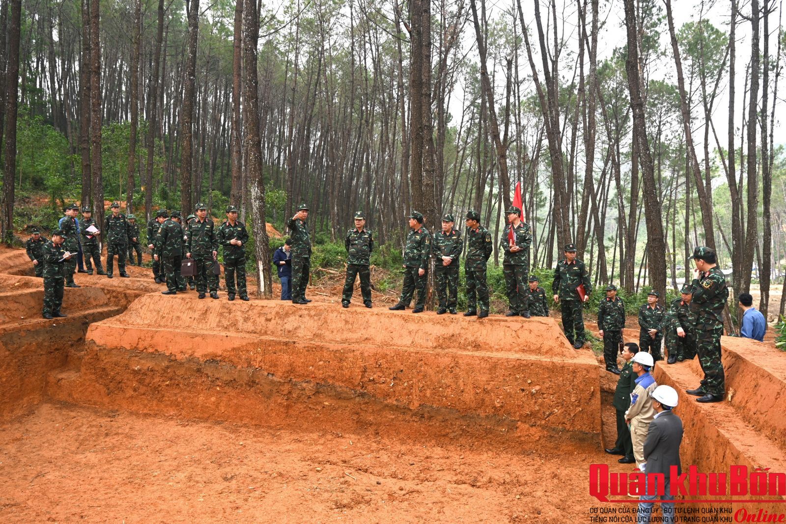 Sau khi nghe các cơ quan báo cáo kết quả tiến độ thực hiện và các khó khăn vướng mắc trong quá trình thực hiện, đồng chí Tư lệnh Quân khu và Đoàn công tác đã trực tiếp kiểm tra chi tiết các khu vực, các vị trí bố trí sở chỉ huy diễn tập, hệ thống hầm hào, công sự...vv.