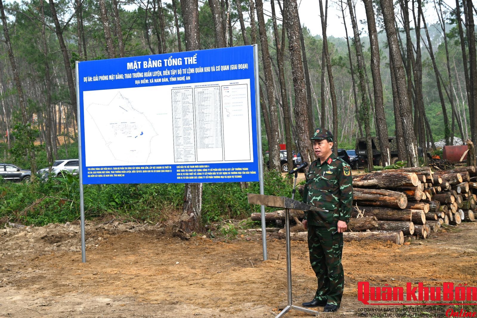 Dự án “Giải phóng mặt bằng, thao trường huấn luyện, diễn tập/Bộ Tư lệnh Quân khu và Cơ quan Quân khu 4” có hơn 50 hạng mục công trình được Bộ Quốc phòng phê duyệt đầu tư xây dựng do Bộ Tham mưu Quân khu làm chủ đầu tư; Nhà thầu thi công xây dựng là Công ty cổ phần đầu tư và xây lắp Trường Thành; Đơn vị Tư vấn thiết kế: Công ty cổ phần đầu tư xây dựng và Thương mại Tân Bảo Thắng; Đơn vị Tư vấn giáp sát: Công ty cổ phần Thương mại và dịch vụ Technic. Hiện nay, thao trường huấn luyện, diễn tập đang được các đơn vị triển khai giải phóng mặt bằng; làm đường; xây dựng hệ thống hầm họp, hào chiến đấu, giao thông theo đúng hồ sơ thiết kế được duyệt và trồng xây xanh ngụy trang.