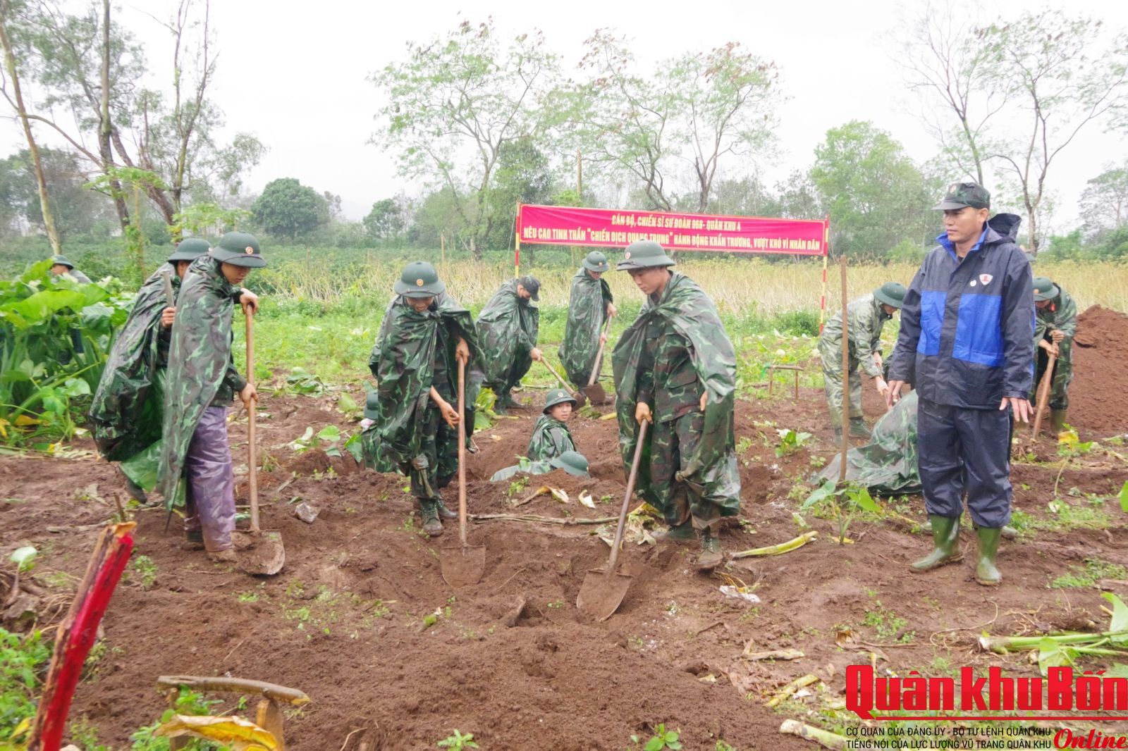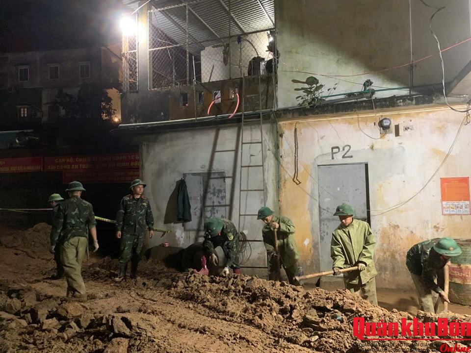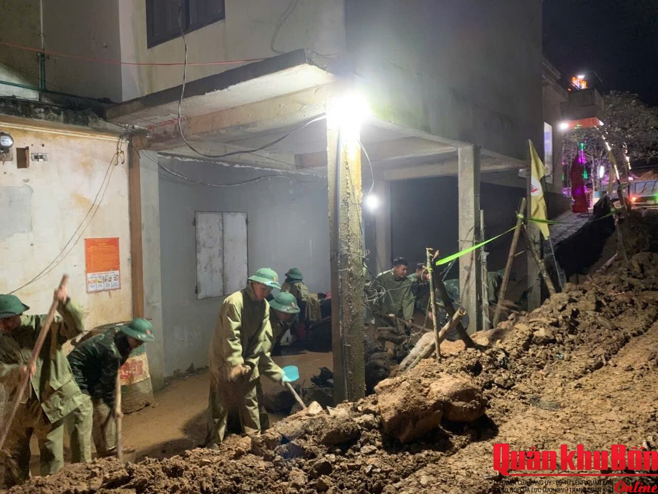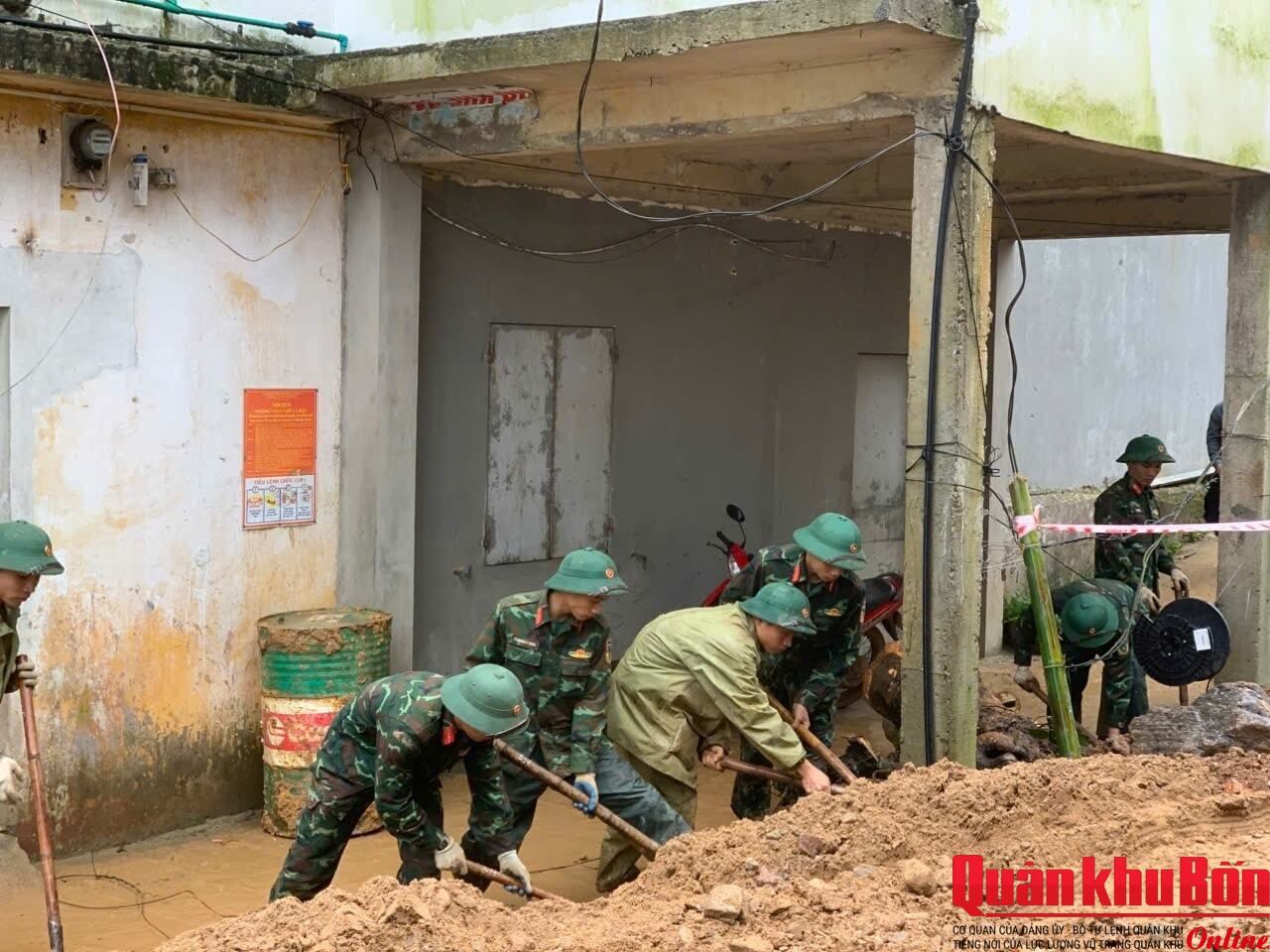 Tại địa bàn thành phố Huế và tỉnh Quảng Trị những ngày qua thời tiết không thuận lợi, trời liên tục đổ mưa nhưng với tinh thần “Phía trước là Nhân dân” cán bộ, chiến sĩ các đơn vị đã tận dụng mọi thời gian triển khai các phần việc. Trên công trường thuộc thôn Tân Vĩnh, xã Khe Sanh, tỉnh Quảng Trị, cán bộ, chiến sĩ Trung đoàn 19 (Sư đoàn 968) đã tranh thủ thời gian làm việc cả ban đêm khảo sát và đánh dấu vị trí khởi công xây dựng một ngôi nhà cho một hộ gia đình sạt lở; trải hơn 1.000m2 lưới chống lún tại công trường sạt lở. Đồng thời, chặt tre, chuyển tre, làm sạch khu vực sạt lở; đánh dấu đường đi tại mỏ đất và mỏ cát…