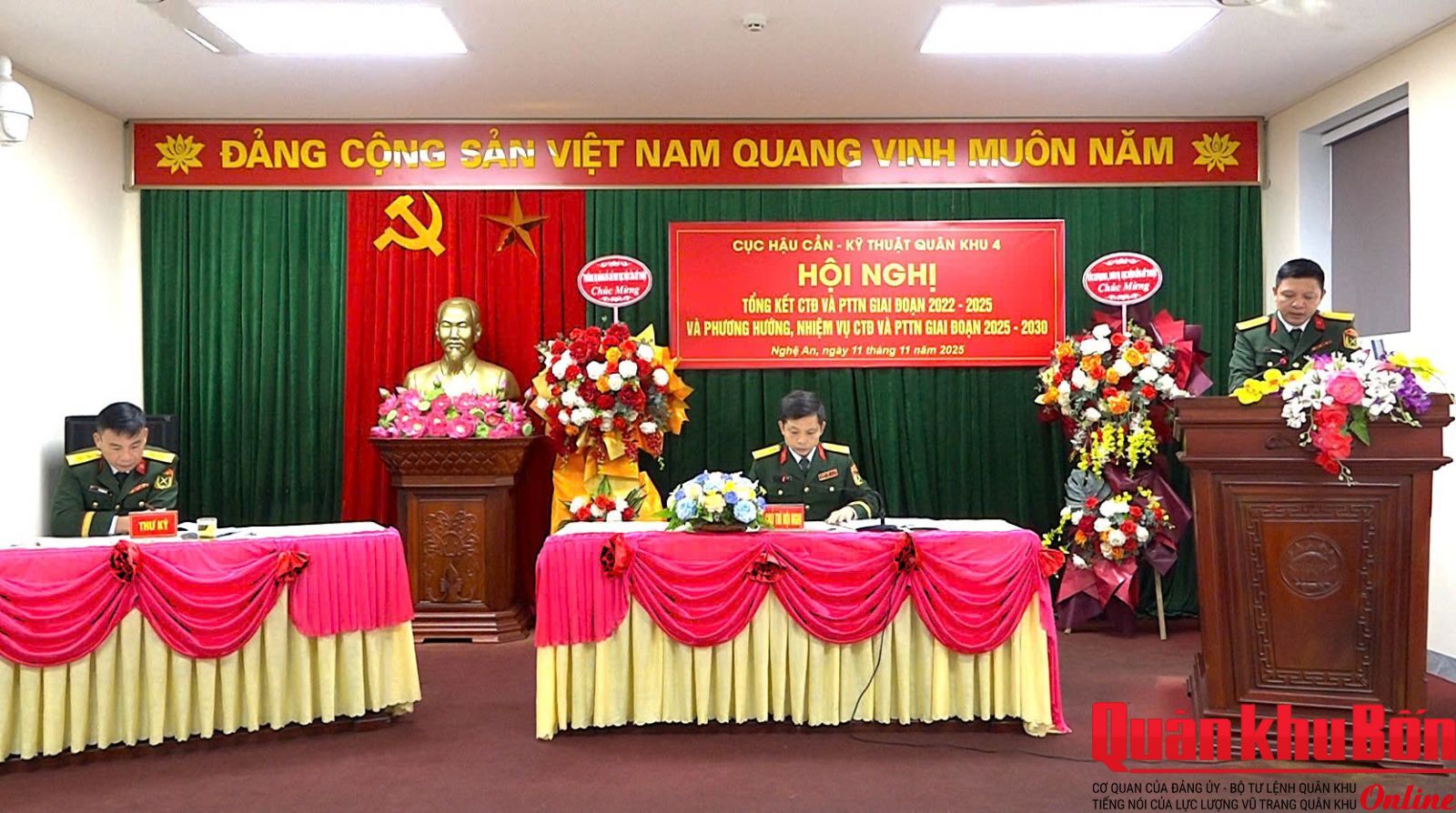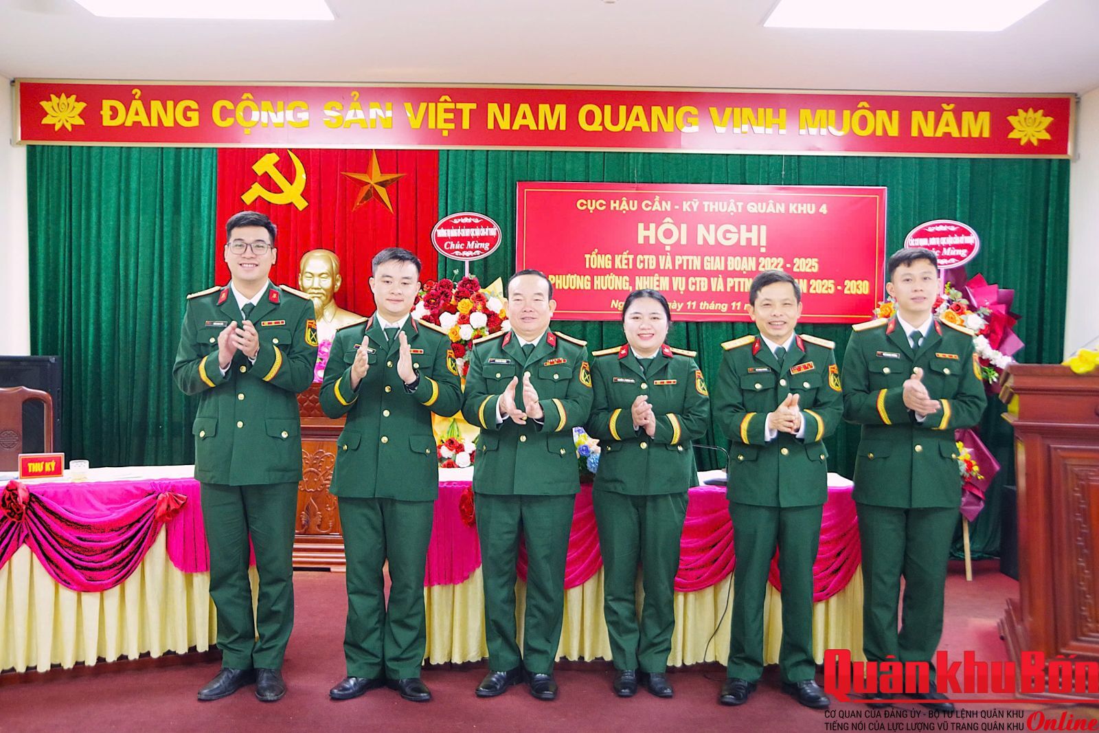 Sáng 11/11/2025, Cục Hậu cần – Kỹ thuật Quân khu 4 tổ chức Hội nghị tổng kết công tác Đoàn và phong trào thanh niên giai đoạn 2022 – 2025; triển khai phương hướng, nhiệm vụ giai đoạn 2025 – 2030. Đại tá Phan Gia Thuận, Bí thư Đảng ủy, Chính ủy Cục dự và chỉ đạo hội nghị.