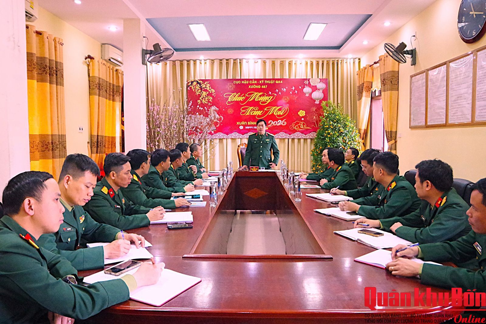 Nhân dịp Tết Nguyên đán Bính Ngọ 2026, ngày 12/2/2026, Đoàn công tác Cục Hậu cần – Kỹ thuật Quân khu 4, do đồng chí Đại tá Phạm Đức Tuấn, Chủ nhiệm Hậu cần – Kỹ thuật Quân khu 4, làm trưởng đoàn đã đến thăm, kiểm tra và chúc Tết cán bộ, chiến sĩ Lữ đoàn 654, Kho Kỹ thuật K2, Xưởng 467 và Kho KX3.