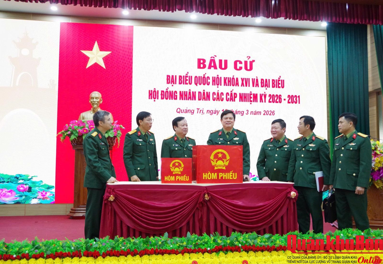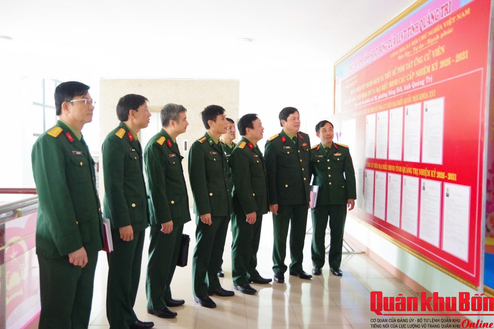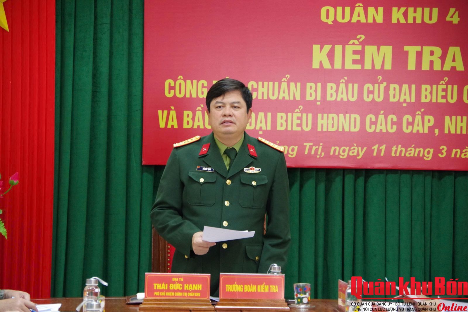 Chiều ngày 11/3/2026, đoàn công tác Quân khu 4 do Đại tá Thái Đức Hạnh, Phó Chủ nhiệm Chính trị Quân khu làm trưởng đoàn đã đến kiểm tra công tác chuẩn bị bầu cử đại biểu Quốc hội khóa XVI và bầu cử đại biểu Hội đồng Nhân dân các cấp nhiệm kỳ 2026 – 2031 tại Bộ Chỉ huy Quân sự (CHQS) tỉnh Quảng Trị. Tham dự đoàn có đại diện phòng Quân lực, Bảo vệ An ninh, Dân vận Quân khu. Tiếp và làm việc với đoàn có Đại tá Lê Hồng Việt, Chính ủy Bộ CHQS tỉnh Quảng Trị; Đại tá Trương Như Ý, Phó Chính ủy Bộ CHQS tỉnh; Đại tá Ngô Văn Dũng, Phó Chính ủy Ban Chỉ huy BĐBP tỉnh.