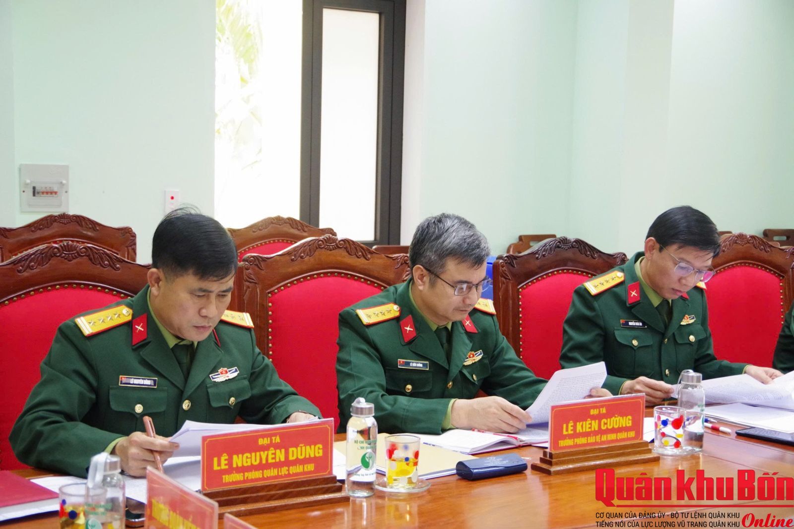 Đại tá Thái Đức Hạnh, Phó Chủ nhiệm Chính trị Quân khu 4 kiểm tra công tác chuẩn bị bầu cử tại Bộ Chỉ huy Quân sự tỉnh Quảng Trị