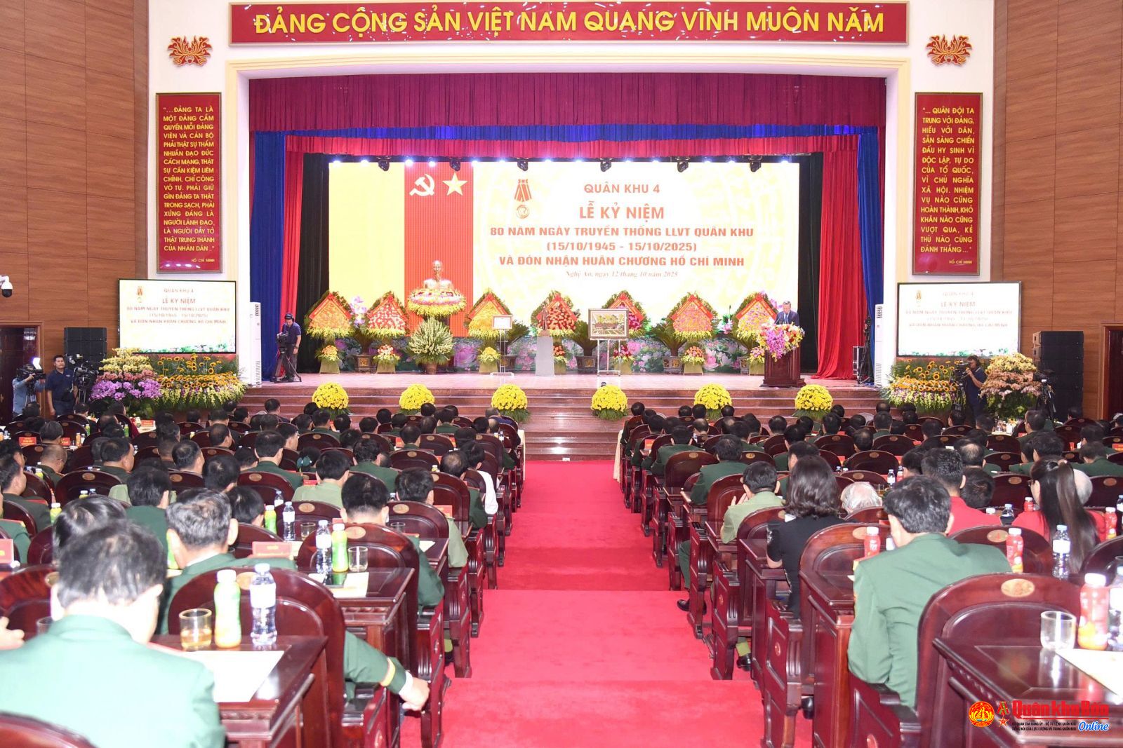Hôm nay, tại tỉnh Nghệ An, quê hương Chủ tịch Hồ Chí Minh kính yêu, Đảng ủy, Bộ Tư lệnh Quân khu 4 long trọng tổ chức Lễ kỷ niệm 80 năm Ngày truyền thống lực lượng vũ trang Quân khu (15/10/1945 - 15/10/2025) và vinh dự đón nhận Huân chương Hồ Chí Minh lần thứ Ba.