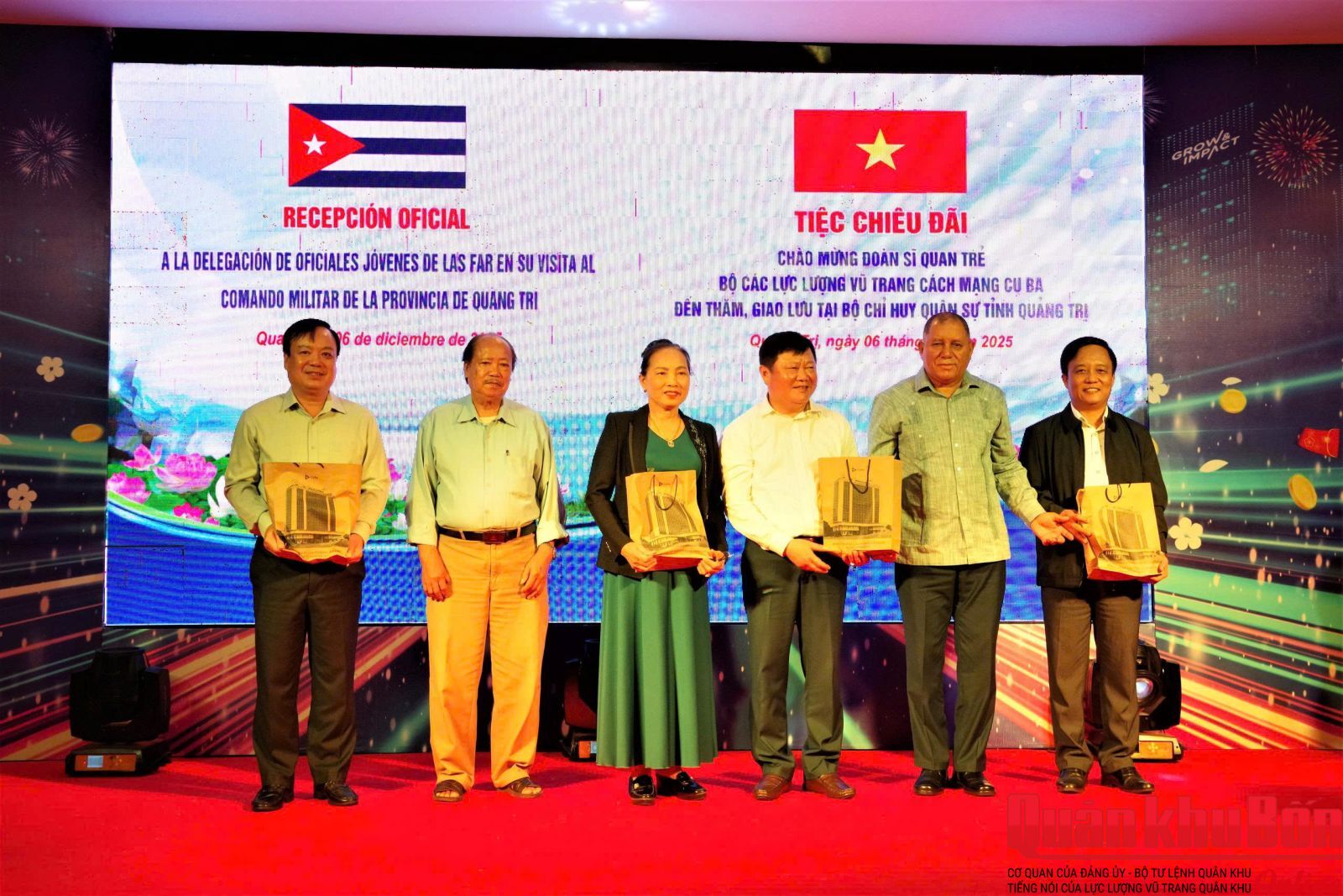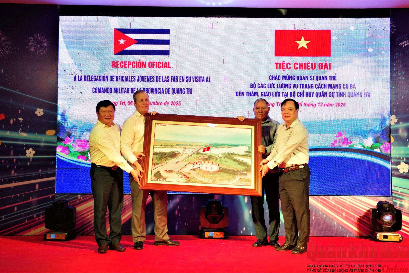 Nhân dịp này, Bộ CHQS tỉnh Quảng Trị đã trao quà và bức tranh Di tích Đôi bờ Hiền Lương – Bến Hải tặng đoàn công tác. Đoàn sĩ quan trẻ Bộ các LLVT cách mạng Cuba cũng trao quà lưu niệm tặng Bộ CHQS tỉnh và nhân chứng lịch sử.