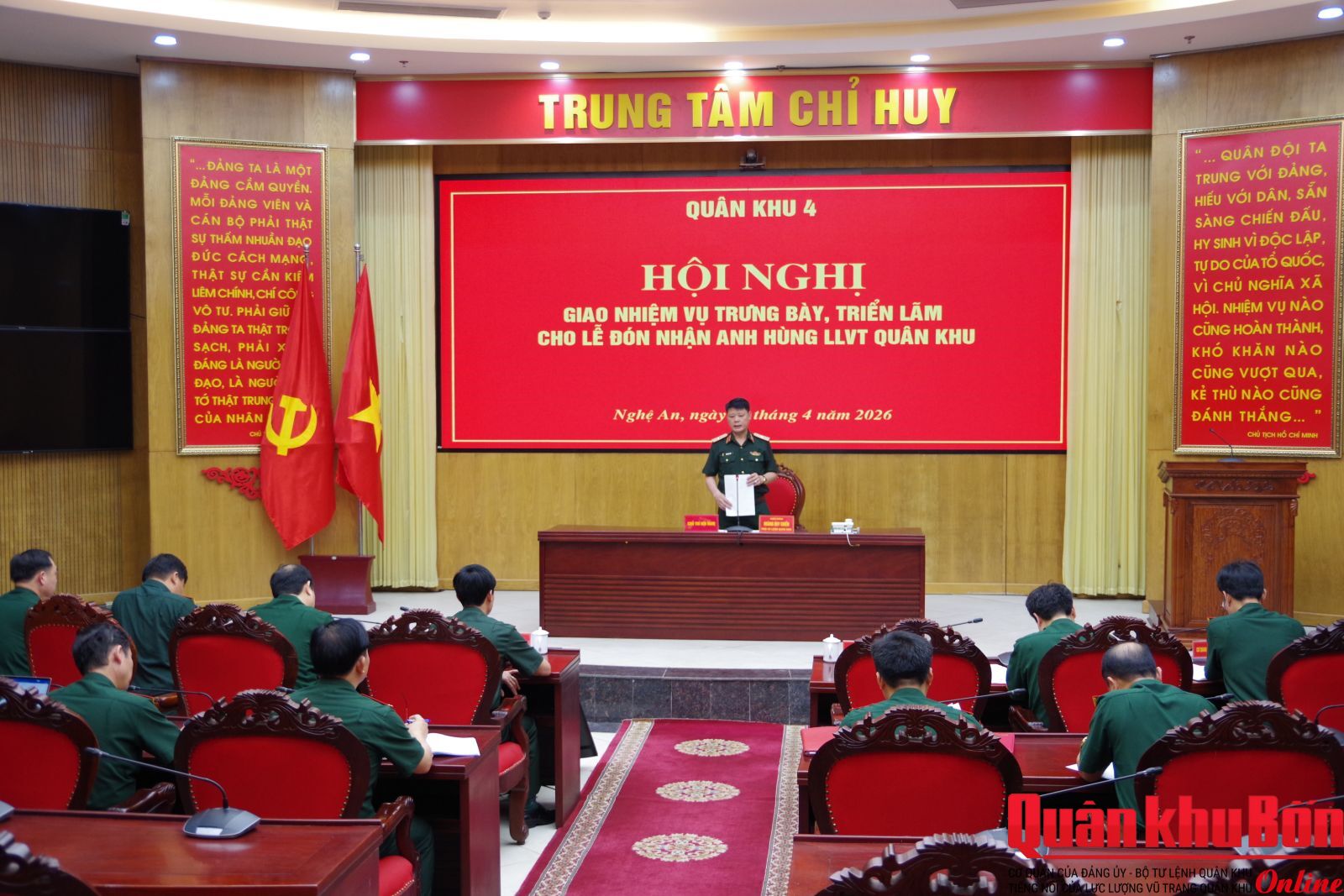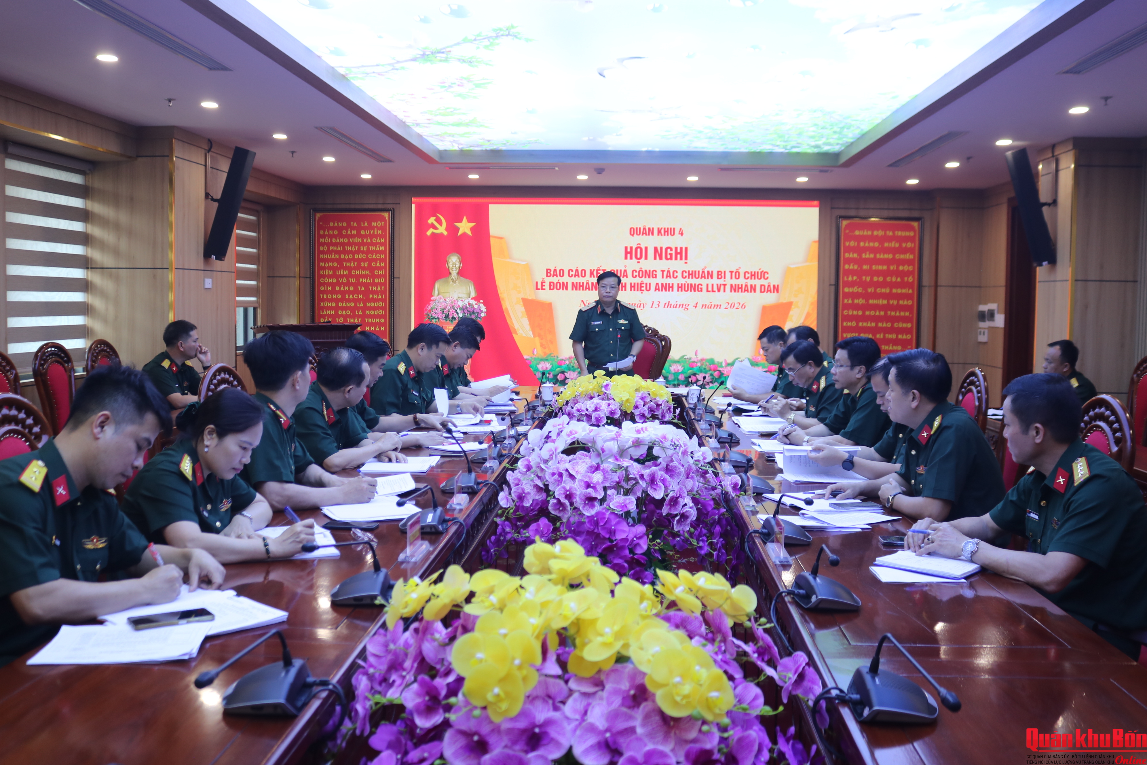 Ngày 13/4/2026, Bộ Tư lệnh Quân khu 4 tổ chức Hội nghị giao nhiệm vụ công tác bảo đảm và trưng bày, triển lãm phục vụ Lễ đón nhận Danh hiệu Anh hùng Lực lượng vũ trang (LLVT) Nhân dân của LLVT Quân khu 4.