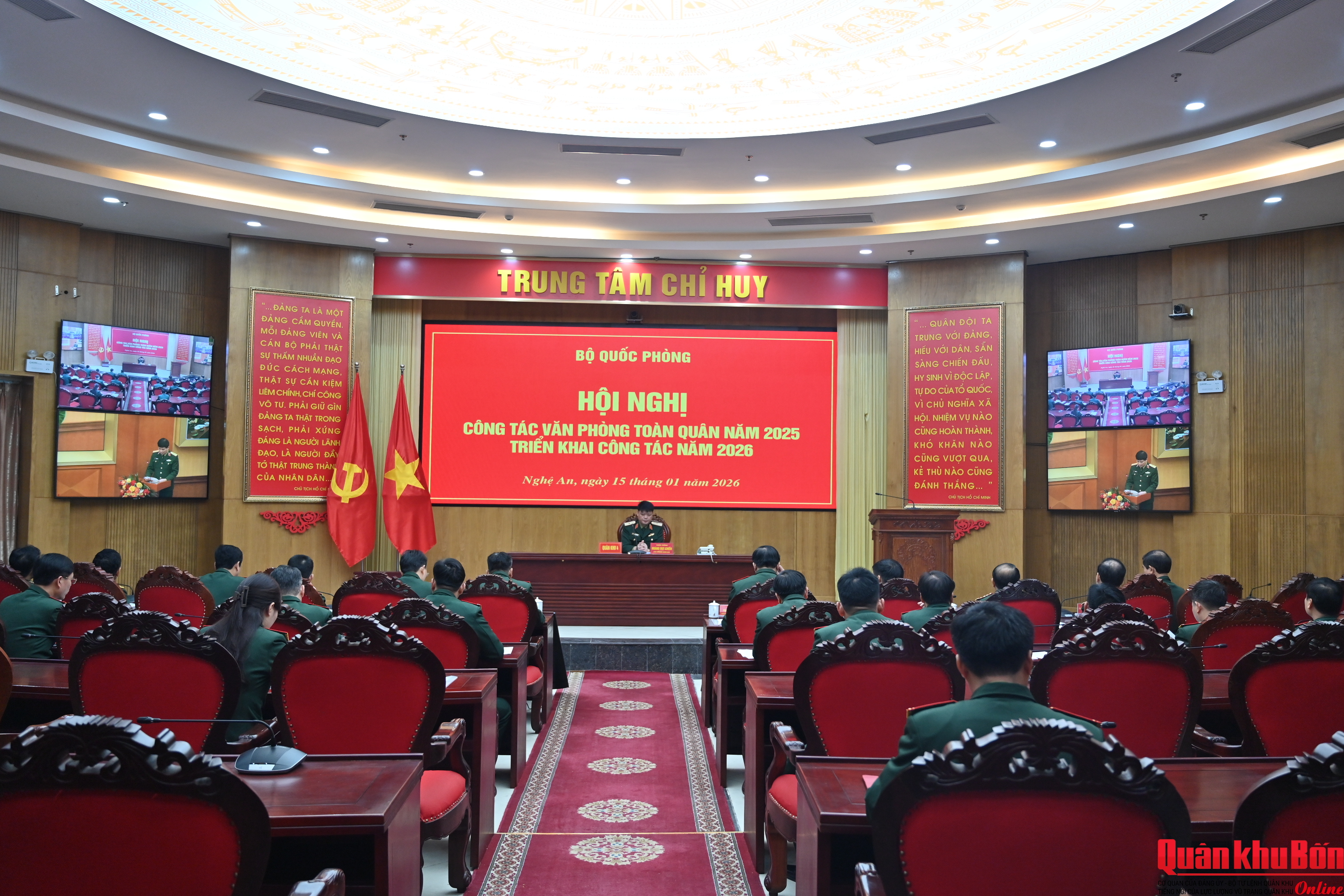 Ngày 16/1/2026, Bộ Quốc phòng tổ chức Hội nghị công tác văn phòng toàn quân năm 2025, triển khai nhiệm vụ năm 2026. Hội nghị được tổ chức theo hình thức trực tiếp kết hợp trực tuyến. Thượng tướng Lê Huy Vịnh, Ủy viên Trung ương Đảng, Thứ trưởng Bộ Quốc phòng chủ trì hội nghị.