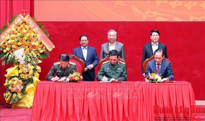 Chiều 6/12/2025, tại Hà Nội, Bộ Công an phối hợp Bộ Quốc phòng và Bộ Ngoại giao tổ chức Lễ ký Quy chế phối hợp công tác giữa ba bộ. Tổng Bí thư Tô Lâm, Chủ tịch nước Lương Cường và Thủ tướng Phạm Minh Chính dự Lễ ký.
