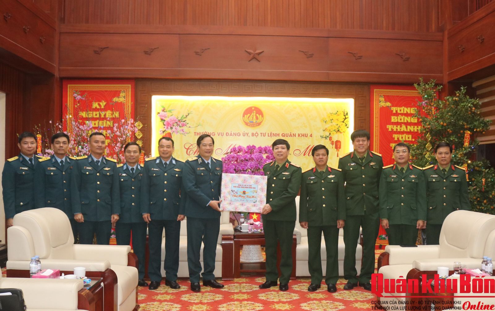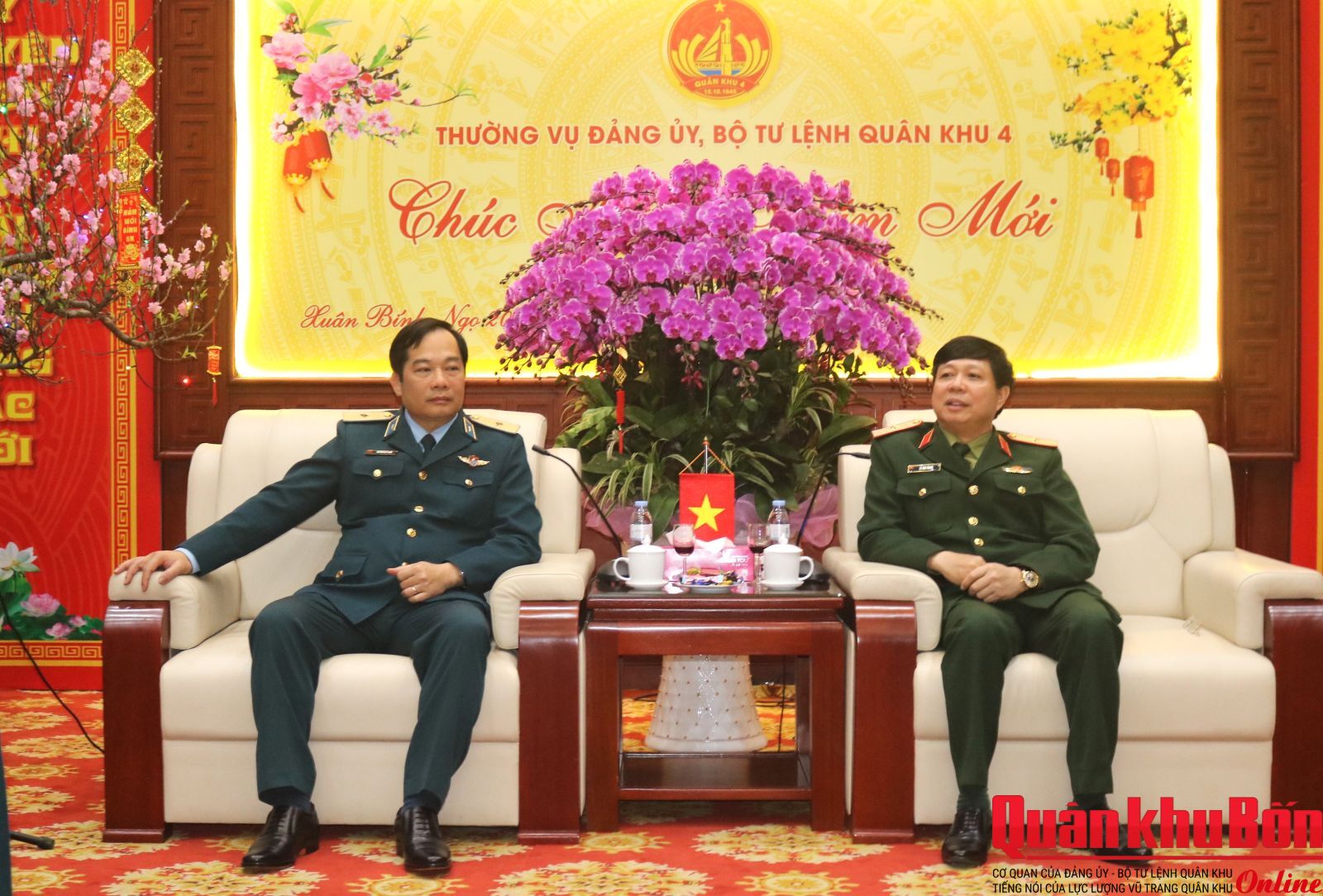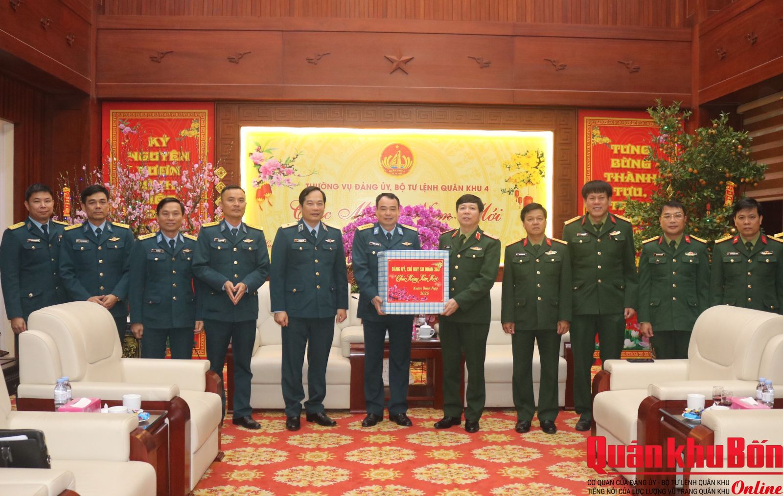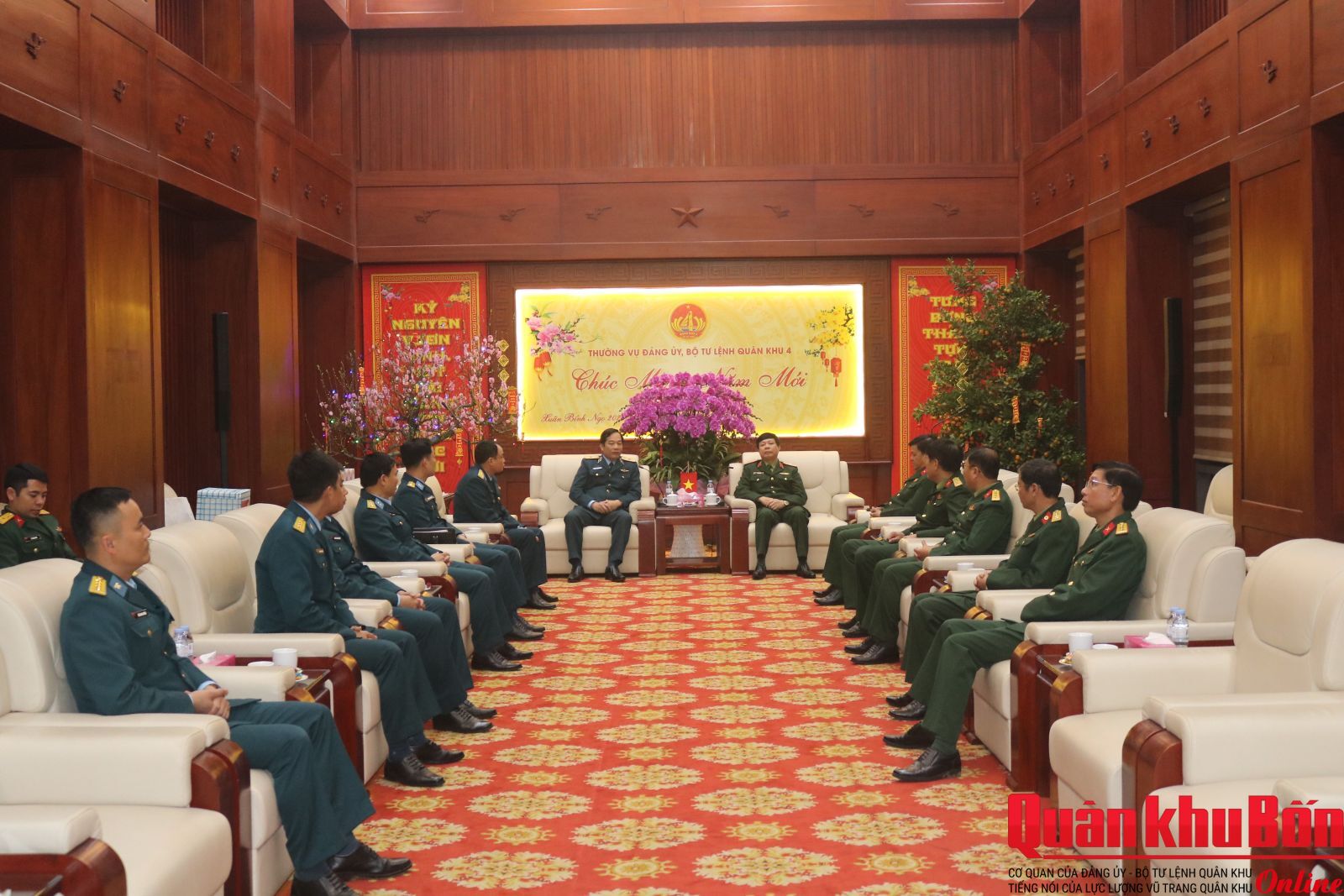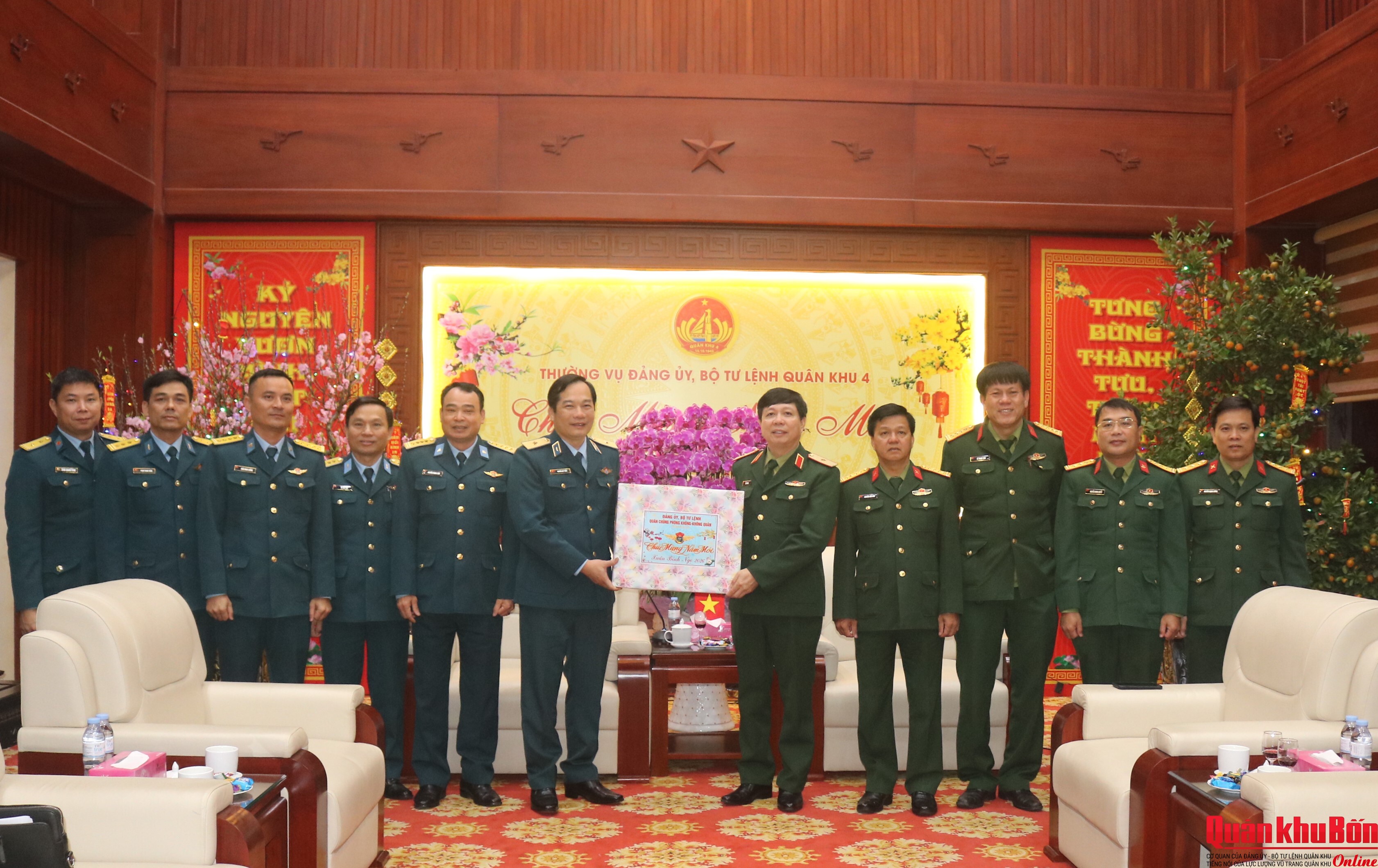 Nhân dịp đón Tết cổ truyền Bính Ngọ 2026, sáng ngày 4/2/2026, đoàn công tác Quân chủng Phòng không - Không quân (PK-KQ) do Thiếu tướng Nguyễn Huy Tuấn, Phó Chính ủy Quân chủng làm trưởng đoàn đã đến thăm và chúc Tết Bộ Tư lệnh Quân khu 4. Thiếu tướng Lê Văn Trung, Ủy viên Ban Thường vụ Đảng ủy, Phó Chính ủy Quân khu 4 cùng đại diện các cơ quan chức năng của Quân khu đón tiếp đoàn.