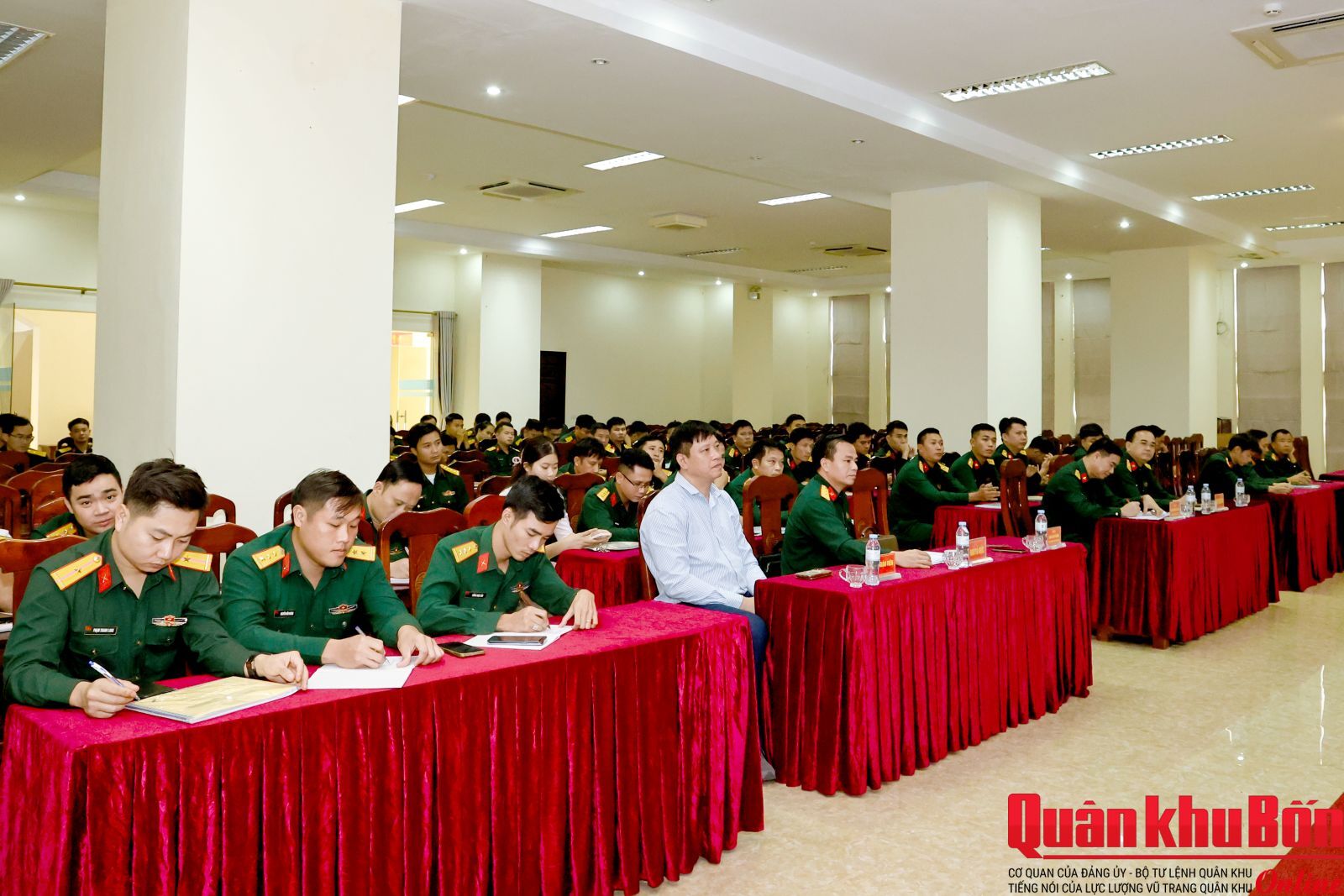Phát biểu chỉ đạo, Đại tá Đinh Xuân Hướng ghi nhận tinh thần cố gắng của Ban Tổ chức, đội ngũ giảng viên và toàn thể học viên. Đồng chí nhấn mạnh: Công tác quản lý, khai thác, sử dụng vật tư CTĐ, CTCT có ý nghĩa quan trọng, trực tiếp bảo đảm cho hoạt động chính trị, tư tưởng, văn hóa tinh thần ở các cơ quan, đơn vị; góp phần xây dựng môi trường văn hóa lành mạnh, nâng cao chất lượng CTĐ, CTCT trong toàn Quân khu. Đồng chí yêu cầu học viên sau tập huấn tiếp tục nghiên cứu, vận dụng kiến thức đã học vào thực tiễn; chủ động tham mưu với cấp ủy, chỉ huy trong quản lý, bảo quản trang bị; duy trì nền nếp, quy trình kỹ thuật; tăng cường ứng dụng công nghệ thông tin, từng bước số hóa trong quản lý vật tư CTĐ, CTCT.