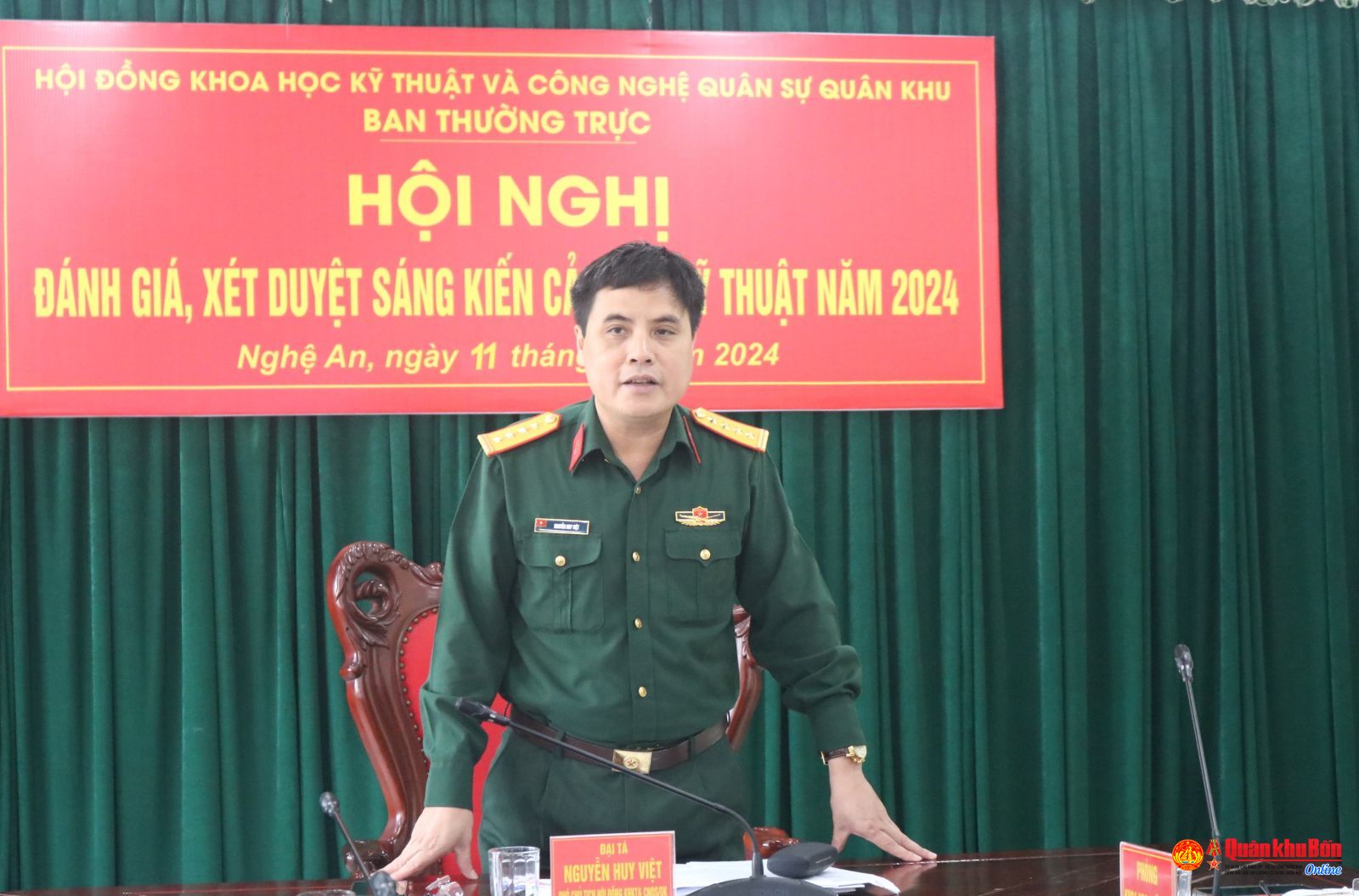 Sáng ngày 11/11/2024, Hội đồng Khoa học Kỹ thuật và Công nghệ Quân sự Quân khu 4 đã tổ chức Hội nghị đánh giá, xét duyệt sáng kiến cải tiến kỹ thuật năm 2024. Đại tá Nguyễn Huy Việt, Phó Chủ nhiệm Hậu cần – Kỹ thuật Quân khu 4, Phó Trưởng Ban Thường trực Hội đồng Khoa học Kỹ thuật và Công nghệ quân sự Quân khu chủ trì Hội nghị.