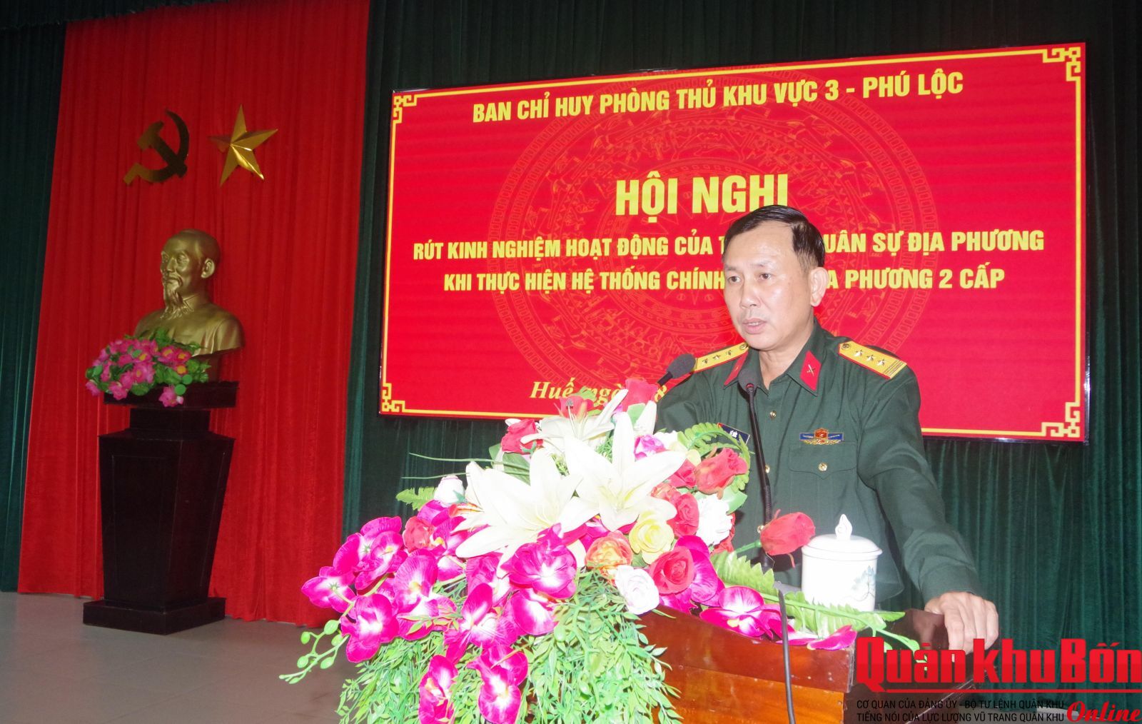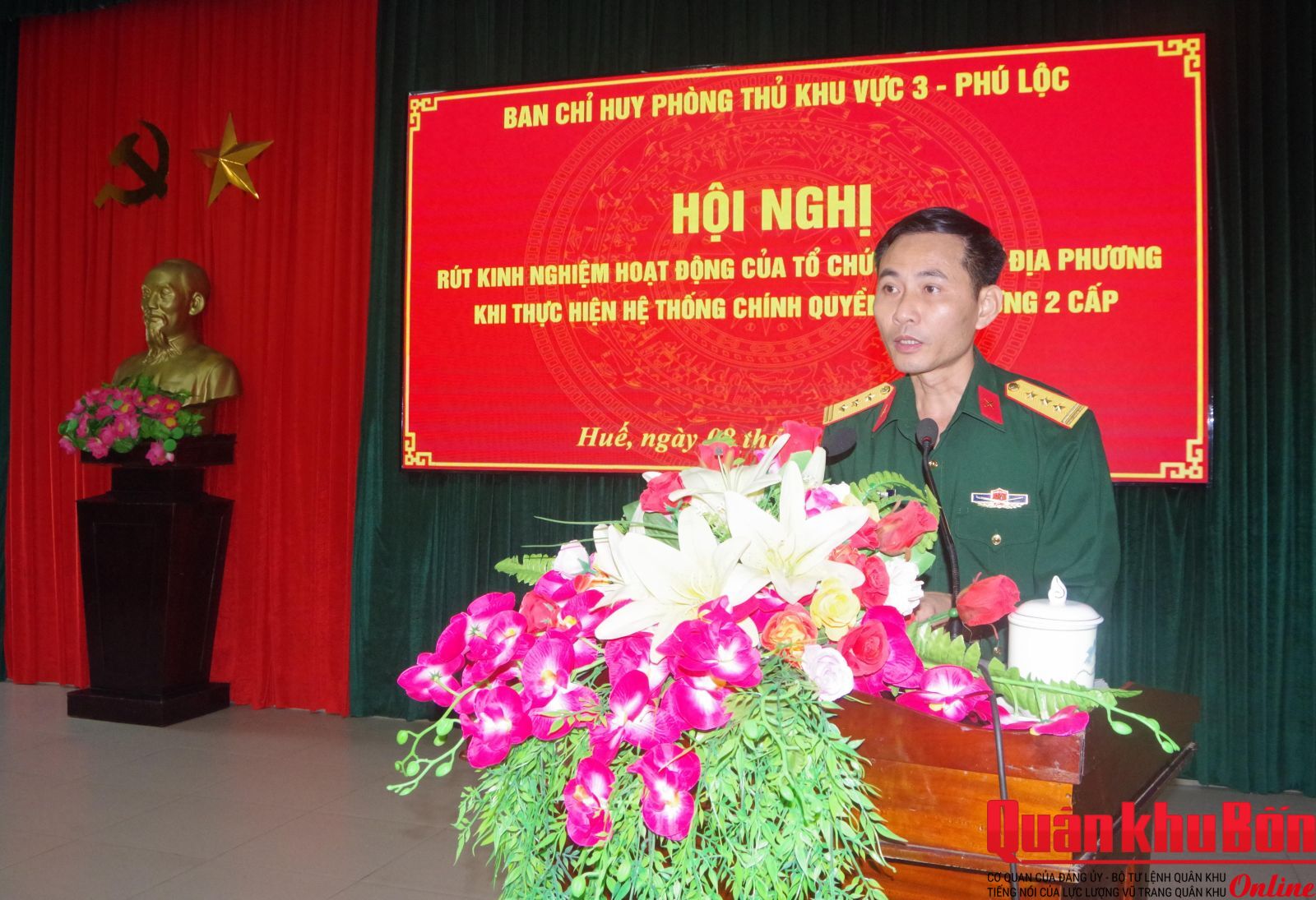 Chiều 8/4/2026, Ban Chỉ huy Phòng thủ khu vực 3 - Phú Lộc (Bộ Chỉ huy Quân sự thành phố Huế) tổ chức hội nghị rút kinh nghiệm hoạt động của tổ chức quân sự địa phương khi thực hiện hệ thống chính quyền địa phương hai cấp. Thượng tá Lê Đức, Chỉ huy trưởng chủ trì hội nghị.