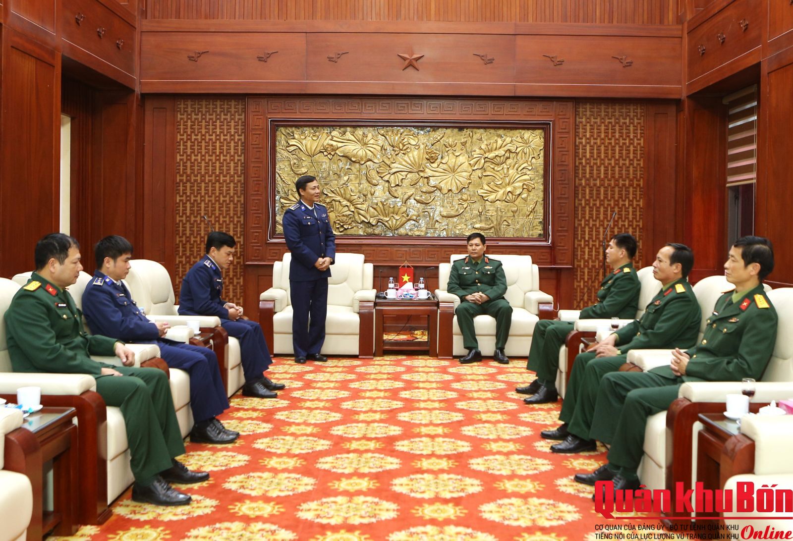 Nhân dịp năm mới 2026 và chuẩn bị đón Tết cổ truyền của dân tộc, chiều 30/1/2026, đoàn công tác Bộ Tư lệnh Cảnh sát biển Vùng 1 do Đại tá Lê Thanh Hải, Phó Tư lệnh làm trưởng đoàn đã đến thăm, chúc mừng năm mới Bộ Tư lệnh Quân khu 4. Đón tiếp và làm việc với đoàn có Thiếu tướng Lê Văn Vỹ, Phó Tham mưu trưởng Quân khu 4.