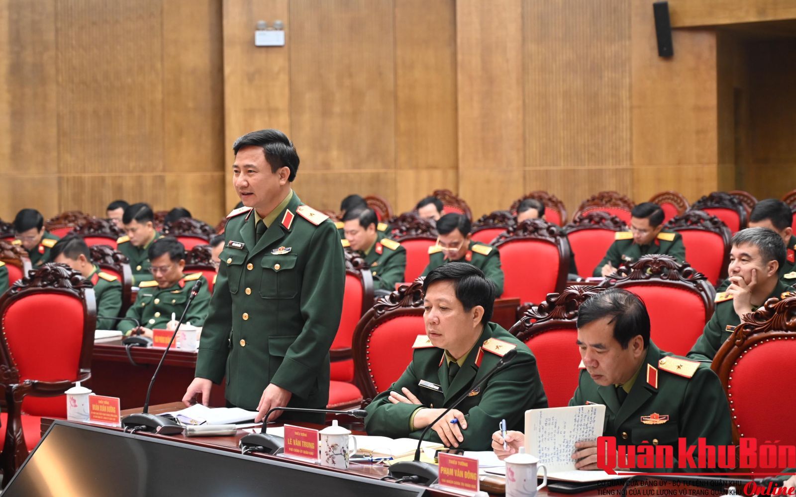 Thiếu tướng Đoàn Xuân Bường, Ủy viên Ban Chấp hành Trung ương Đảng, Bí thư Đảng ủy, Chính ủy Quân khu; các đồng chí trong Thường vụ Đảng ủy, Bộ Tư lệnh Quân khu và đại biểu các cơ quan Quân khu dự Hội nghị.