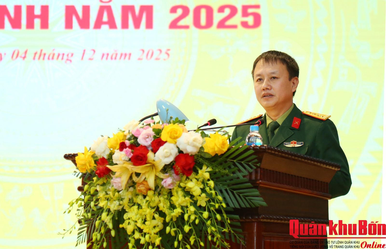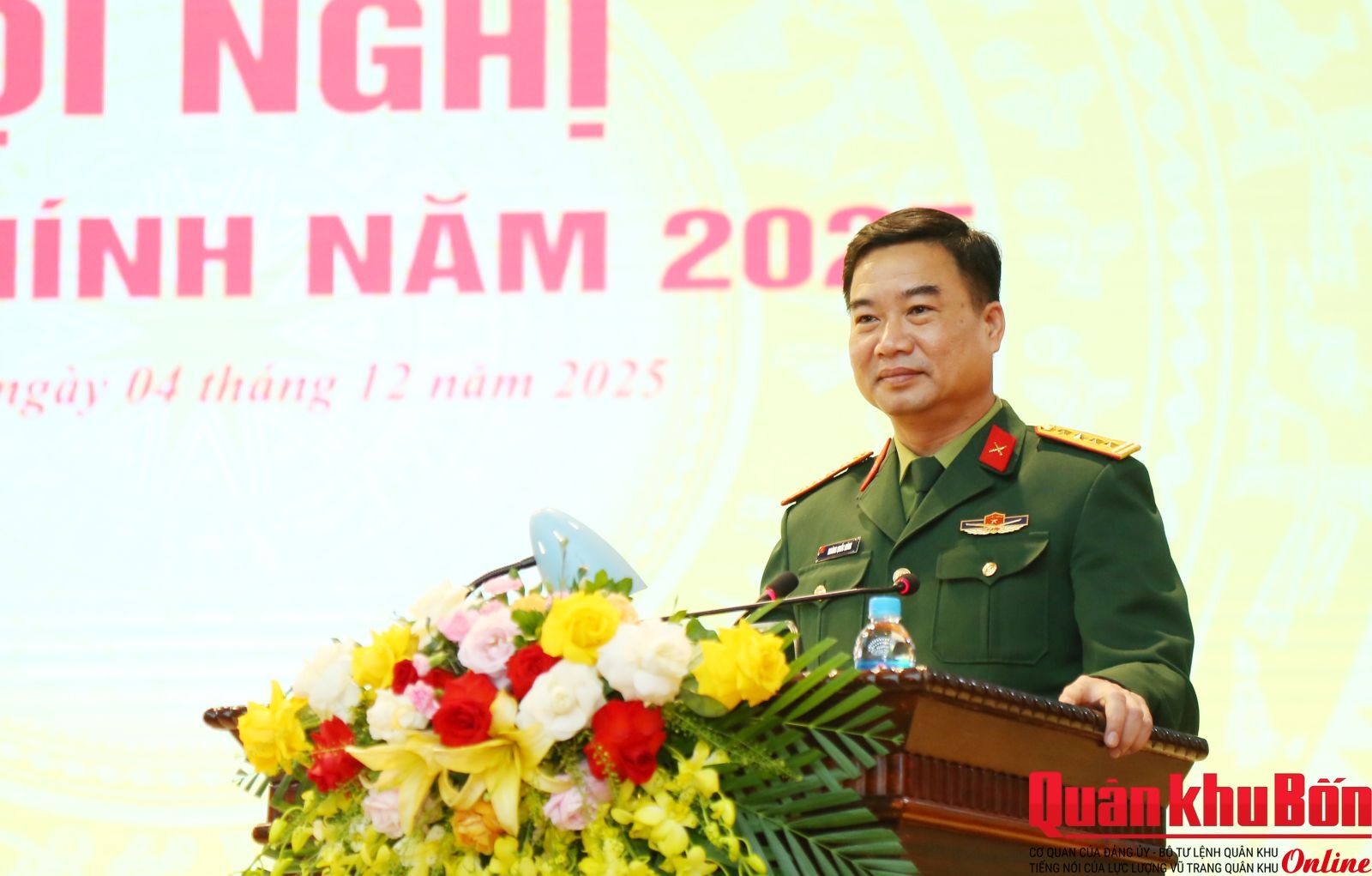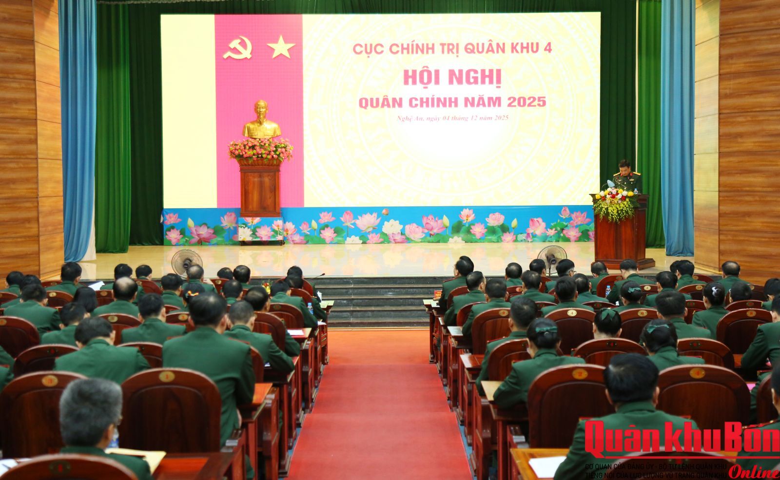 Sáng ngày 4/12/2025, Cục Chính trị Quân khu 4 tổ chức Hội nghị Quân chính năm 2025. Thiếu tướng Phạm Văn Đông, Ủy viên Thường vụ Đảng ủy Quân khu, Chủ nhiệm Chính trị Quân khu chủ trì Hội nghị. Tham dự Hội nghị có Thiếu tướng Phan Văn Sỹ, Bí thư Đảng ủy, Phó Chủ nhiệm Chính trị Quân khu; đồng chí Hoàng Văn Vinh, Phó Chủ nhiệm Ủy ban Kiểm tra Đảng ủy Quân khu; các đồng chí thủ trưởng các phòng, ban, cơ quan cùng cán bộ, nhân viên trong toàn Cục.