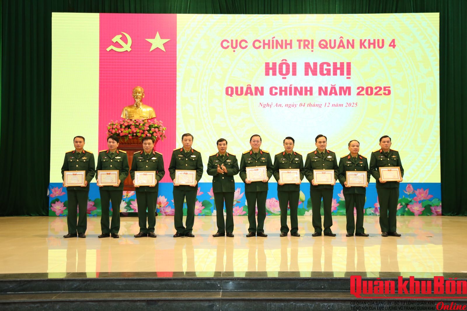 Tại Hội nghị thừa ủy quyền, Thường vụ Cục Chính trị Quân khu công bố và trao tặng Bằng khen của Thủ tướng chính phủ cho 01 tập thể; trao tặng Cờ thi đua xuất sắc cấp Quân khu, Đơn vị quyết thắng và Chiến sĩ thi đua cơ sở cho tập thể, cá nhân có thành tích xuất sắc trong phong trào thi đua quyết thắng năm 2025. Đồng thời, Thường vụ Đảng ủy, Hội đồng thi đua khen thưởng Cục Chính trị phát động phong trào thi đua năm 2026 với chủ đề: “Đoàn kết, kỷ cương, đột phá, sáng tạo, quyết thắng”.