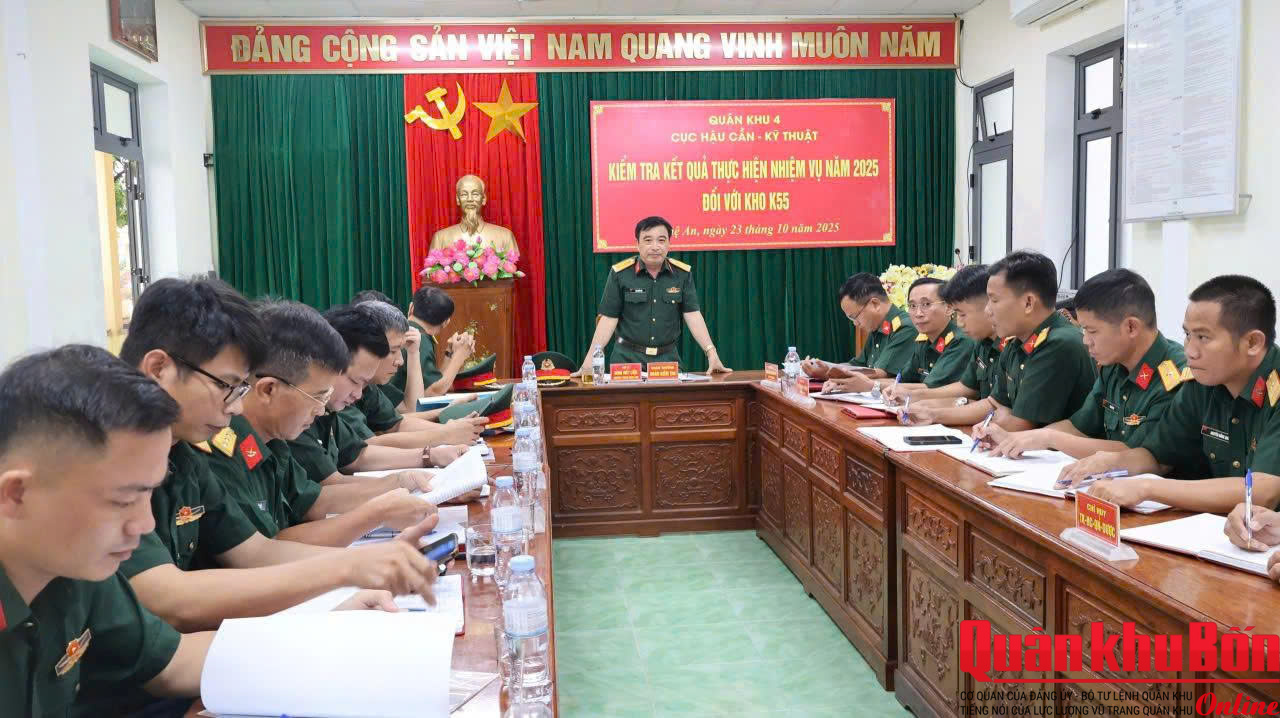 Ngày 23/10/2025, Cục Hậu cần - Kỹ thuật Quân khu 4 tổ chức kiểm tra kết quả thực hiện nhiệm vụ năm 2025 đối với Kho K55.