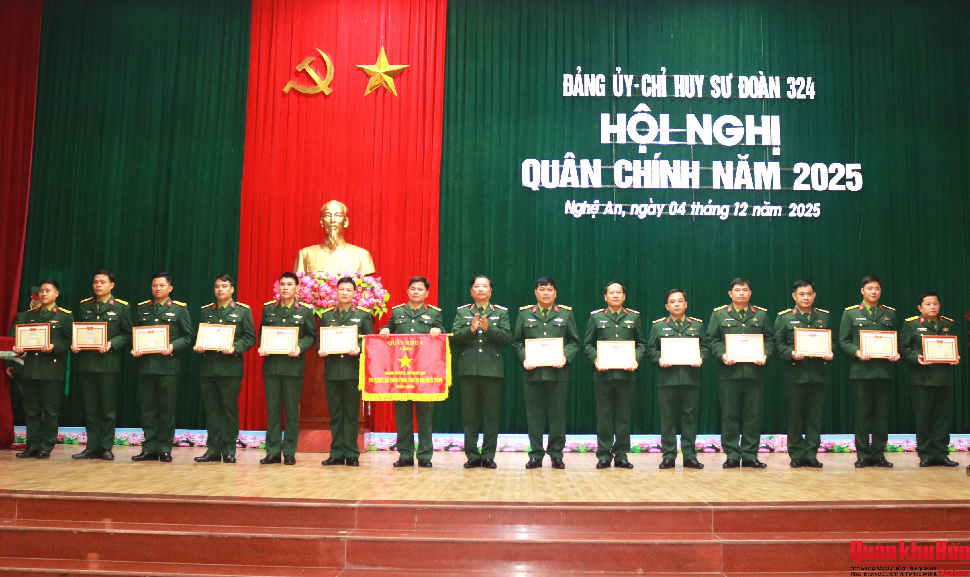 Sáng ngày 4/12/2025, Đảng ủy, Sư đoàn 324 đã tổ chức Hội nghị quân chính năm 2025. Trung tướng Hà Thọ Bình, Phó Bí thư Đảng ủy, Tư lệnh Quân khu 4 dự, chỉ đạo Hội nghị; dự Hội nghị có Đại tá Đinh Xuân Hướng, Phó Chủ nhiệm Chính trị Quân khu; Đại tá Phạm Đức Tuấn, Chủ nhiệm Hậu cần – Kỹ thuật Quân khu. Đại tá Nguyễn Thao Trường, Sư đoàn trưởng Sư đoàn 324 chủ trì Hội nghị.