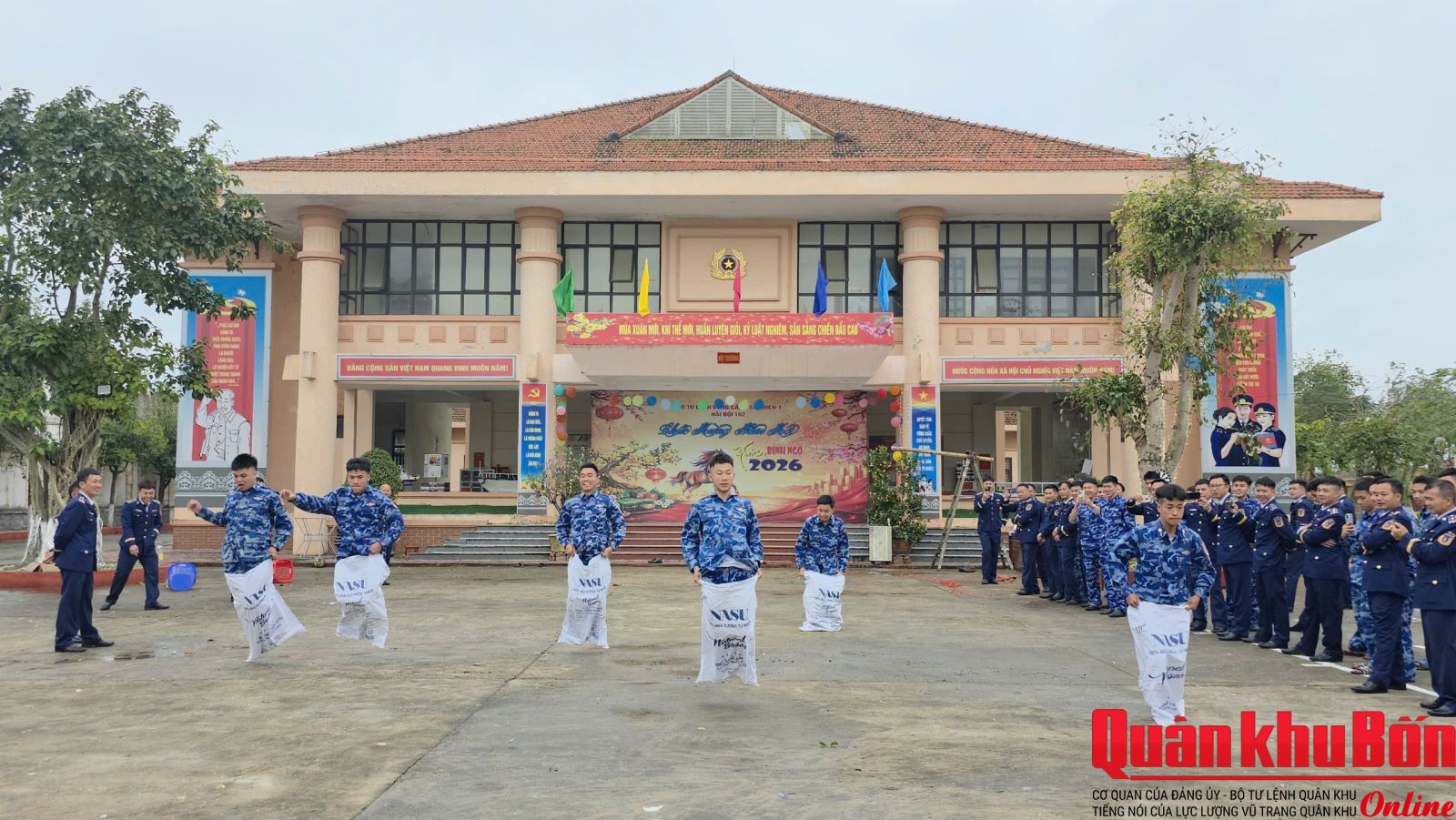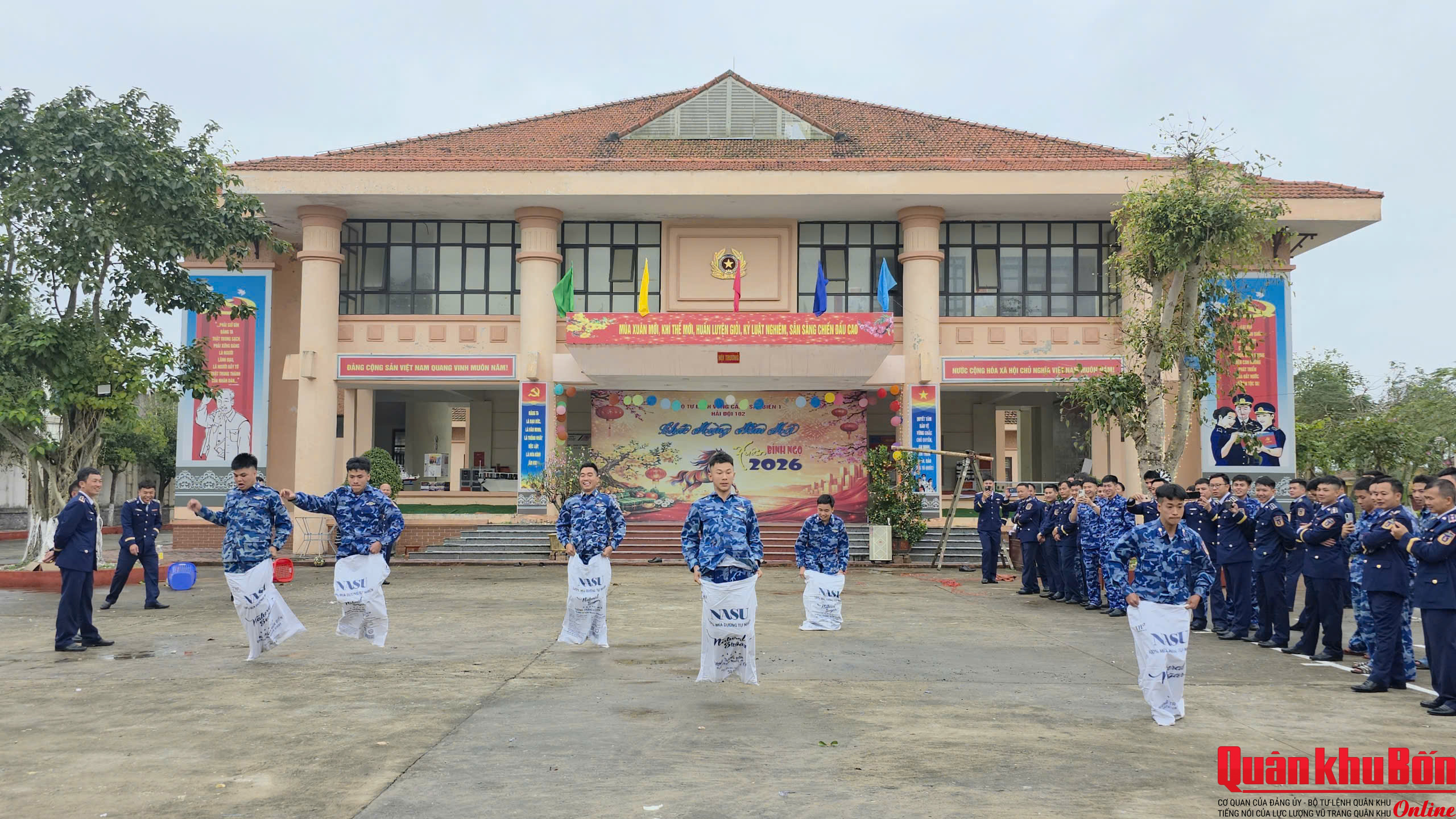 Mồng 1 Tết, đơn vị tổ chức các trò chơi dân gian như kéo co, nhảy bao bố, đẩy gậy, bịt mắt đập bóng nước… tạo không khí rộn ràng, củng cố tinh thần đoàn kết, ý chí quyết tâm trong thực hiện nhiệm vụ.