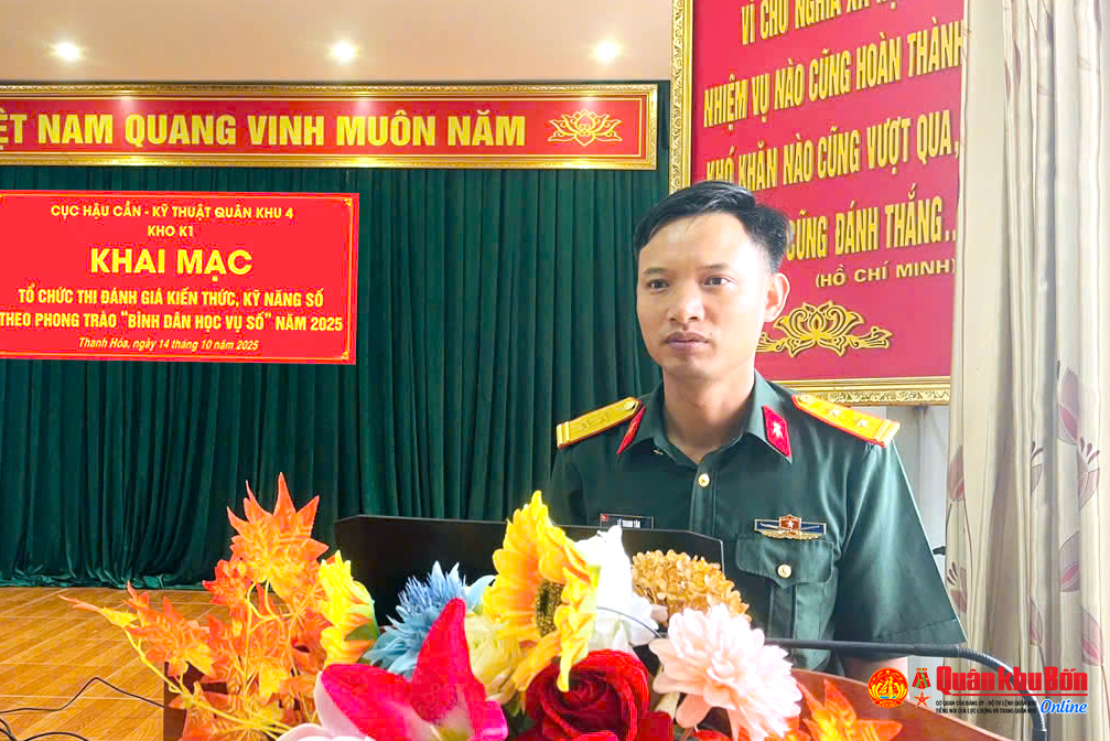 Chiều 14/10/2025, Kho K1, Cục Hậu cần - Kỹ thuật Quân khu 4 tổ chức khai mạc kỳ thi đánh giá kiến thức, kỹ năng số theo phong trào “Bình dân học vụ số” năm 2025. Dự lễ khai mạc có các đồng chí trong Đảng ủy, Chỉ huy Kho cùng toàn thể cán bộ, chiến sĩ đơn vị.