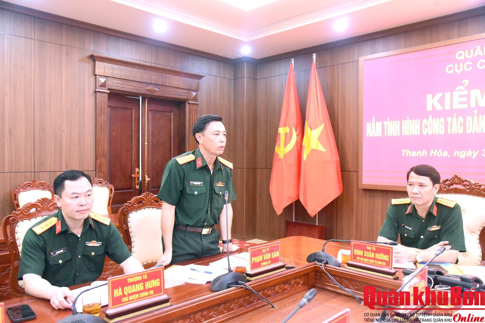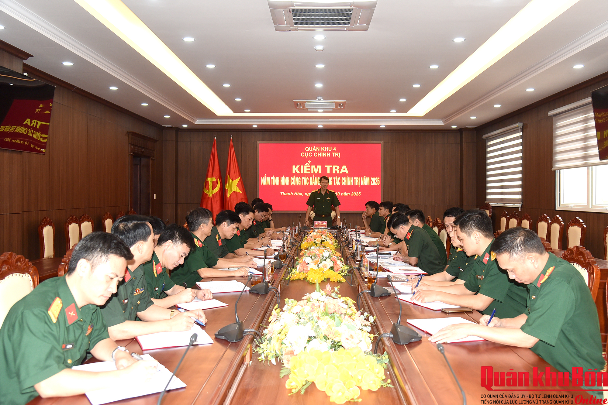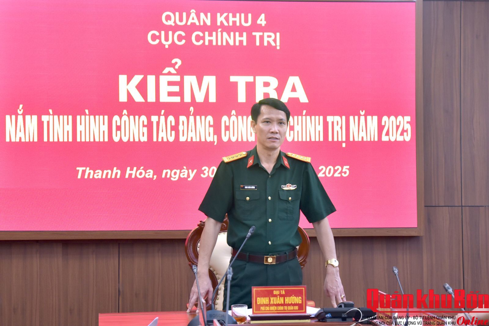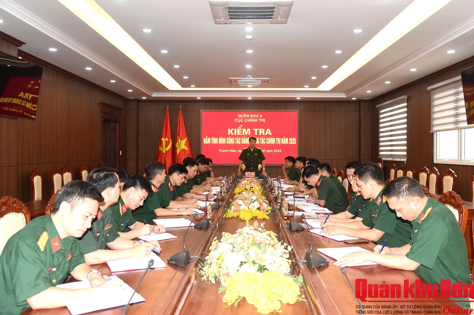 Trong 2 ngày 29 và 30/10/2025, đoàn công tác Quân khu 4 do Đại tá Đinh Xuân Hướng, Phó Chủ nhiệm Chính trị Quân khu làm trưởng đoàn đã đến kiểm tra kết quả hoạt động công tác đảng, công tác chính trị năm 2025 của Bộ Chỉ huy Quân sự tỉnh Thanh Hóa.