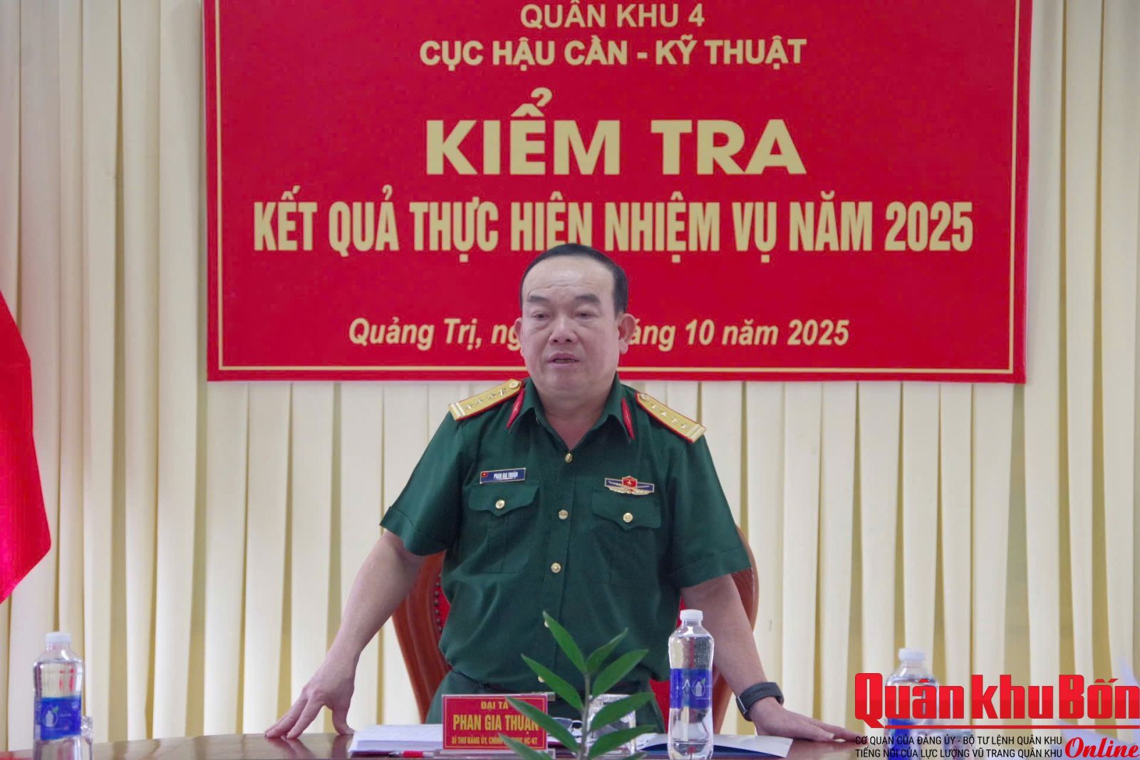 Ngày 22/10/2025, Đoàn công tác Cục Hậu cần – Kỹ thuật Quân khu do Đại tá Phan Gia Thuận, Bí thư Đảng ủy, Chính ủy Cục làm Trưởng đoàn đã kiểm tra toàn diện kết quả thực hiện nhiệm vụ năm 2025 tại Kho K3. Tham gia đoàn kiểm tra có các đồng chí thủ trưởng và cán bộ các phòng, ban trực thuộc Cục.